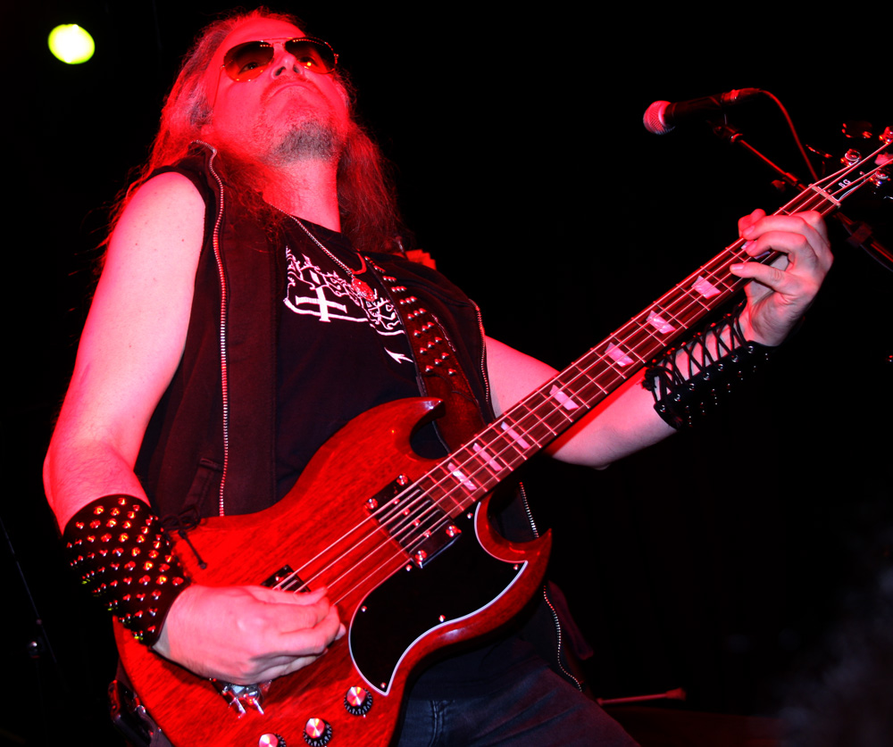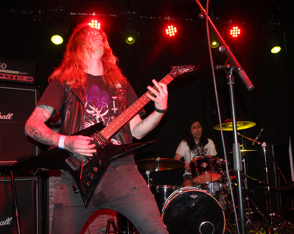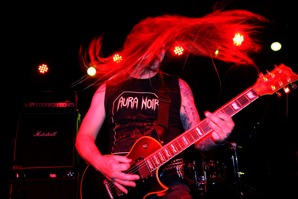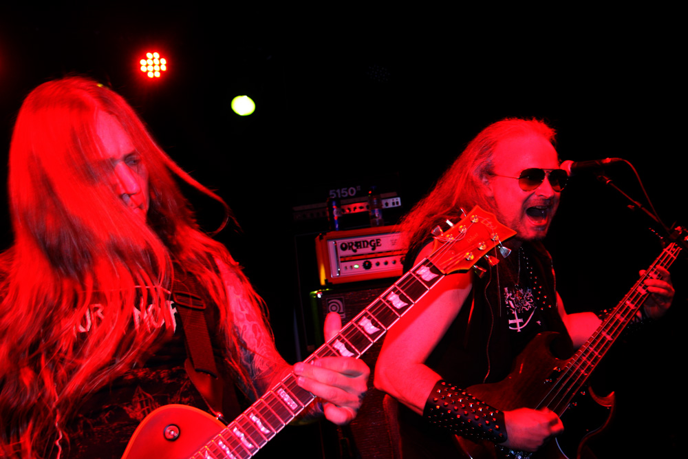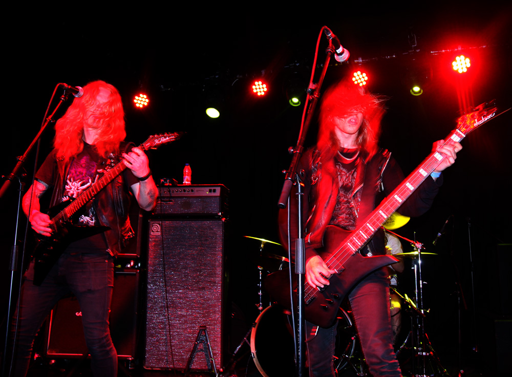 Numbers like Destructor do exactly what they suggest but there is the matter of a new album too and Aura Noire is a banger and one I have been playing a lot so the charge of material like ‘Shades Ablaze’ (yep tonight is definitely fiery) goes down very well indeed. It’s suitably primitive and untouched by time and any wheels of progress, something this lot are not in the slightest concerned about. The tribal thumper is spurred on by Apollyon’s hammer like battery and there’s more than a touch of Venom and Sodom about ‘The One Who Smite and bodies really start to tumble. The drummer takes over the main vocals on ‘Gaping Grave Awaits’ and it rides into glory with a MotorTank flavour and gnarly fury. Burning rubber down the highway 666 we get some great riffing from Blasphemer and even a couple of crowd surfers who can’t contain themselves but thankfully stay away from the stage and causing any further damage to the players. There’s no time to pick a highlight but ‘Deep Tracts Of Hell’ sits comfortably next to new one ‘Demoniac Flow’ and the whole set literally flies by in a blur. London got a B.T.A. that’s black thrash attack in style here tonight and I fell out the venue happy as Larry with a copy of the new album clutched in my hand. Top night!