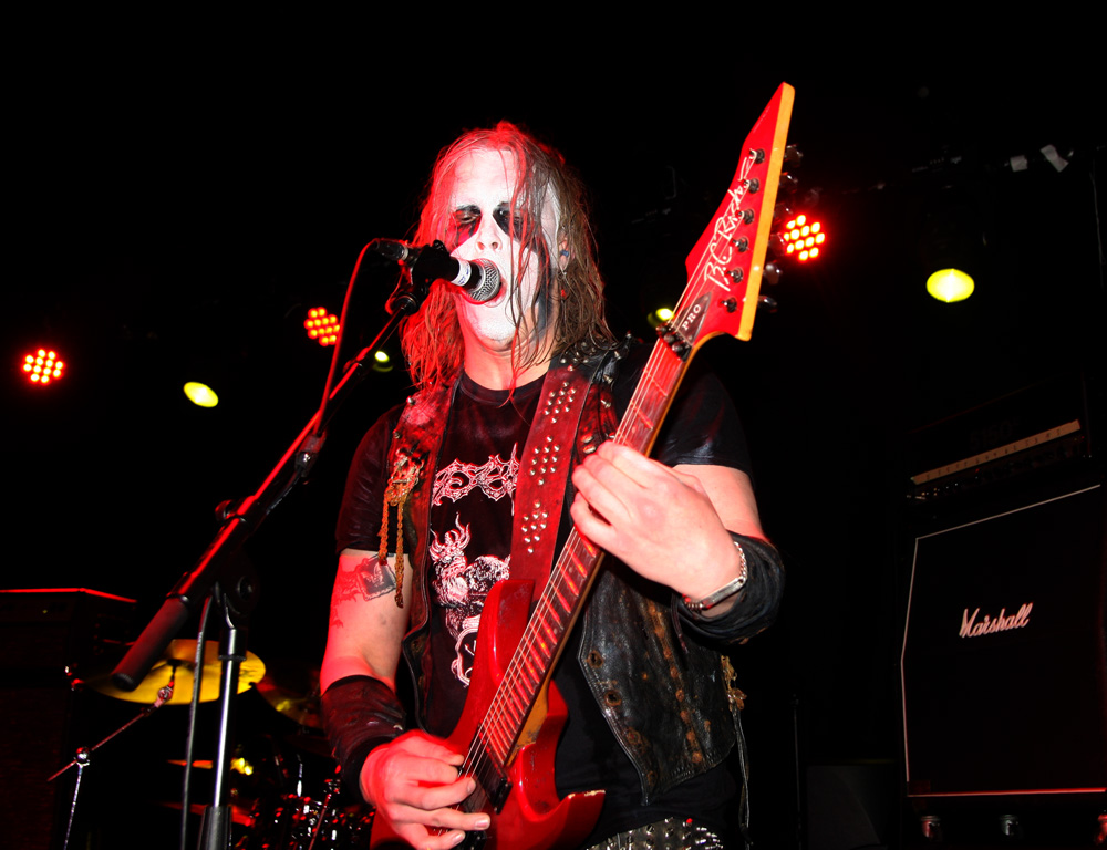 London swelters in the hottest may bank holiday ever but there is a room in Tufnell Park where people wearing far too much black are taking refuge in. It’s grim, ugly and suitably air-conditioned as we get ready for a trio of hideous bands. First up are Taphos a quartet that are meant to be from a wonderful, wonderful place but no doubt they consider Copenhagen as Copenhell. Dead on time they stride on the stage and unleash an angry and savage sound that has them hitting the ground running. It’s definitely time to wake up and we are all well aware that there is going to be little in the way of finesse as far as tonight’s proceedings are concerned. With sledgehammer drumming, gnarly guitar and bass and barking vocals Taphos drive things forward into a headlong tumult that’s deathly and deadly. The sound grinds like a swarm of virulent wasps and attacks with little in the way of remorse. Barks and vomited growls are spot on from vocalist H (yep one of those initialised bands) but he takes a pause to forewarn us of impending debut album ‘Come Ethereal Somberness’ before they assault us with a track from it, galloping away and going hell for leather. The gritty and gnarly sound gets a few banging heads down the front and this lot certainly fit in with the ugly theme of the night as far as their music is concerned. The band may well look young but they play their death the old way, there’s absolutely no modern trappings about their filth and fury. There is a certain subtlety amidst the bludgeoning though and listening carefully there is some definite technicality as they make guitars weep like wailing banshees. A short, sharp but superior set.