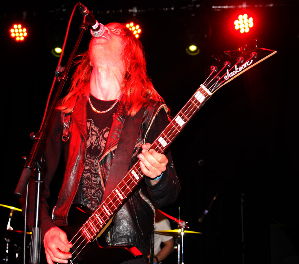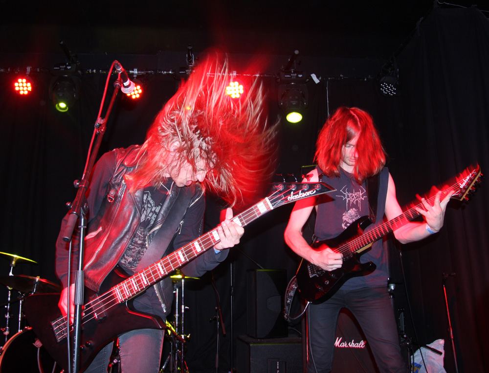 There’s no polite way of saying this but Degial pong a bit. There must be some sort of rationing of soap in Uppsala but luckily the audience after taking a deep breath compose themselves and in my case having managed to catch every London performance by them so far it’s something I am used to. It adds a bit to the atmosphere really as the music is putrid enough in its own right and when they launch into ‘Predator Reign’ they really knock us off our feet in more ways than one. That particular album slapped me somewhat silly last year and once getting head around the massive sound billowing out the speakers the intricacies and winding grinding black thrash venomously hone in and strangle like razor-wire. Bathed in red lighting the mist of bloody savagery infects and with the band steaming through things in a maddening flurry it feels like they are trying to possess our very souls. With older songs ‘Swarming’ the guitars sound like pigs being gutted and as they get ready for the next onslaught a doomy weight descends atmospherically before ‘Savage Mutiny’ literally explodes. It’s nothing short of nuclear and unforgiving and the crowd are more than happy to react. ‘Crown Of Fire’ is an apt song for the heat of the day and absolutely scorches with its tsunami of riffs and stop start militaristic break-down. By now most are caught up and banging away like maniacs. Although the songs are clinically delivered there is also a big sense of chaos here, the two forces combining into something really special. This was a set I simply didn’t want to finish but it had to and with the groups Savage Covenant well and truly delivered they culminate with ‘Thousand Spears Impaled’ leaving me nothing short of breathless.