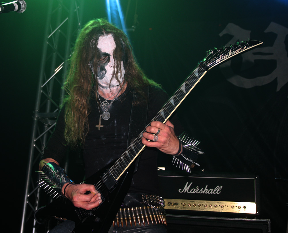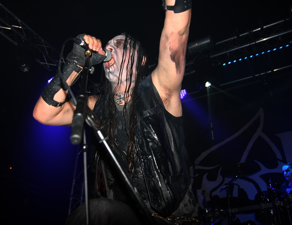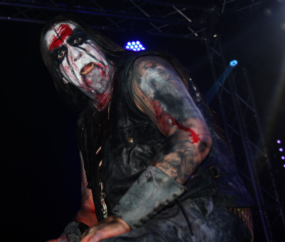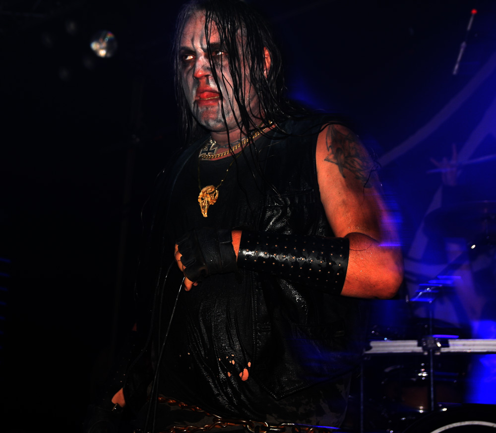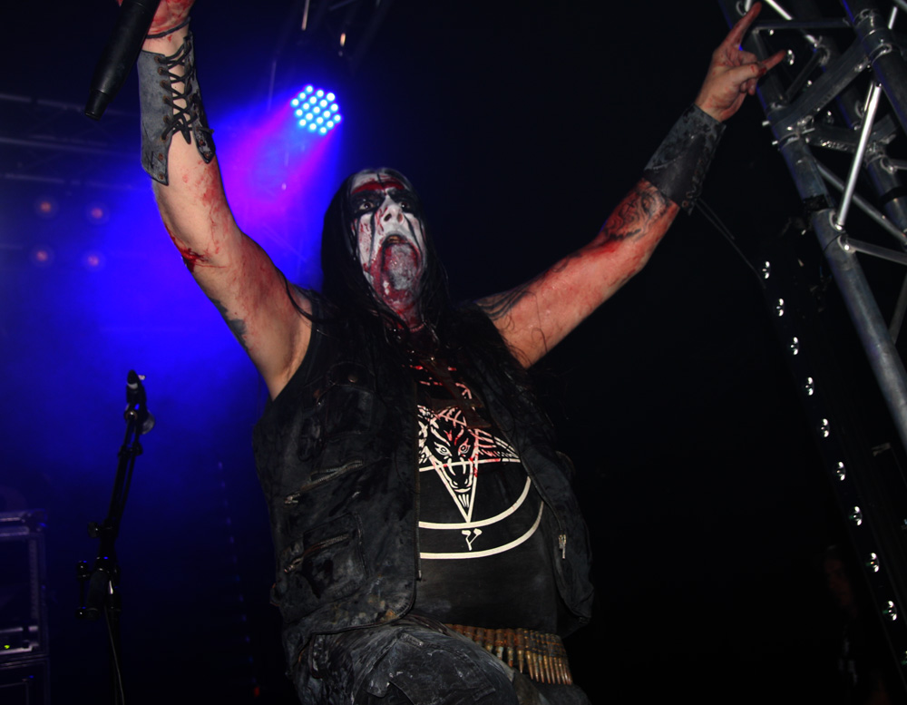 Ah Ragnarok, we have met several times before but I have never actually found myself managing to submit to your dominance. Highly respected by many there’s no denying the Norwegians look the part and indeed smelled it too, that could have been down to the blood spatter they were sporting and they are certainly big and beastly. The huge inverted cross guitarist Bolverk has round his neck looks like it has been made by a whole sheet of forged iron and their paint is totally grotesque and macabre. Musically though they suffer from what I can only describe as brutal but workmanlike hammer and tongs approach that is too one dimensional for me to get moved by. Death grunts are foully belched and instruments and vocals seem pushed to the levels giving even this powerful PA a run for its money. I’m obviously in the minority as they send many into paroxysms of madness as ‘Blood Of Saints’ is smashed out. As for draining of bodily fluids are concerned I just prefer a slow drawn out torture keeping the victim alive and in torment as long as possible, here the unrelenting savagery gets the job over all too quickly. Taking us back in time to 94 Pagan Land is even more furious and primitive, listening to it now it has a lot more grandiosity with keyboards adding to the atmosphere than it did here. Nope I’m afraid I just couldn’t get into the band again tonight.