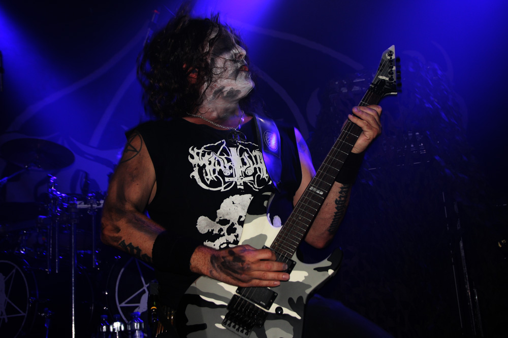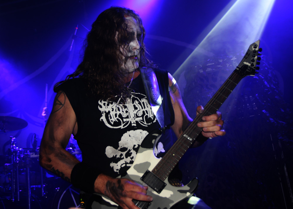 Time for the heavy artillery and the headliners come out firing with all guns blazing courtesy of Panzer Division Marduk. There’s a sign on the venue door stating no stagediving but let’s face it who would be stupid enough to attempt to invade the band’s space. Mortuus hangs over the front ranks looking imposing, Morgan is in position stage left and Devo to the right, all are obscured by hair most of the time and Fredrik Widigs is hidden at the back battering the hell out of his kit. There’s always a strange sound between songs with Marduk that sounds like tanks trundling along, it could be my imagination after seeing them so many times but it adds to the eeriness of their war hewn performance bringing palpable atmosphere before the next devastating explosion. The set is lethal, a literal Baptism of Fire and fury with newer cuts and something older like the cauldron of hate that is ‘Of Hell’s Fire, going down very well with those intent to cause carnage on the dance floor.