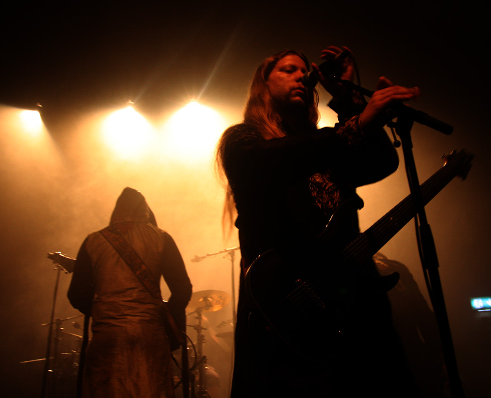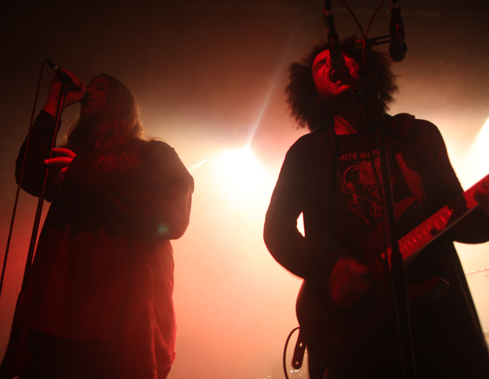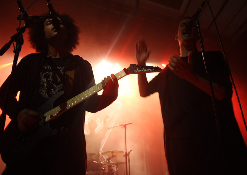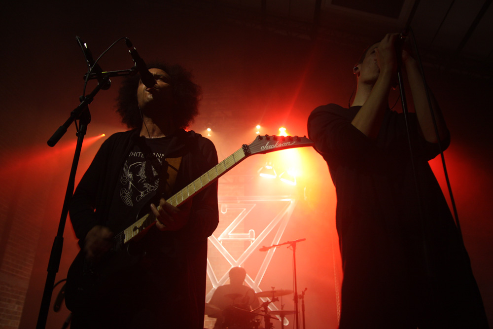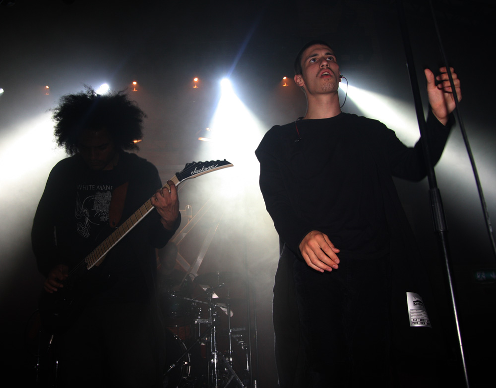 Zeal And Ardor have kept things very real and have not brought a trendy young bunch of bucks playing avant-garage or anything like that with them but have Swiss countrymen Schammasch in tow. We approve of this wholeheartedly and it is the second encounter with the spiritual blacksters this year after seeing them support Batushka. It is no surprise that dry ice is swirling about the stage when they stride on and turn backs on us ready to unleash their sonic might. Blood red and cold icy blue light fill the spaces as they turn and bring a huge sense of gravity allowing us to instantly realise that the PA here has plenty of beef about it. Swaggering, adroit and clinical they are a force to be reckoned with as they plummet us into a heaving, chasmic void. Main vocalist C.S.R is a cloaked demon from the outer limits with his gruff commands but the music is at times graceful and full of grandeur. I’m wondering if some here have even encountered music like this before, looking around I suspect not all have and this is a real baptism in ‘Golden Light’ for them. The band seem to capture and mesmerise the audience though as songs flow and entrance. Naturally billowing out dark passages, miasmic instrumentation swirls like ectoplasm through the ether. Moving back in the venue the sound is near perfect the drums hitting the brick work and the sharp treble tones of the guitars glistening. We are finally greeted and urged to close eyes and receive of transformation before being swept into last song ‘Metanoia.’ With plenty of clean and near hymnal vocals we indeed reach the musical enlightenment the band had invited us into. With 3 guitars and bass all strumming up a storm it’s an impressive conclusion. Schammasch are a band who constantly manage to beguile and do very odd things to the senses; tonight the light poured out of them!