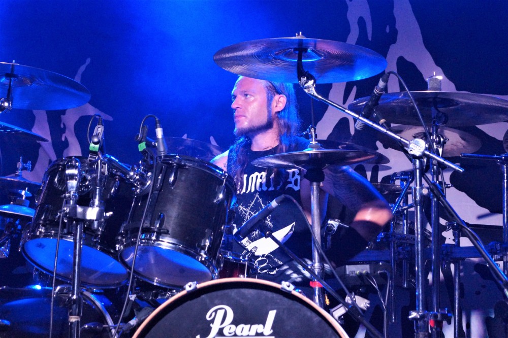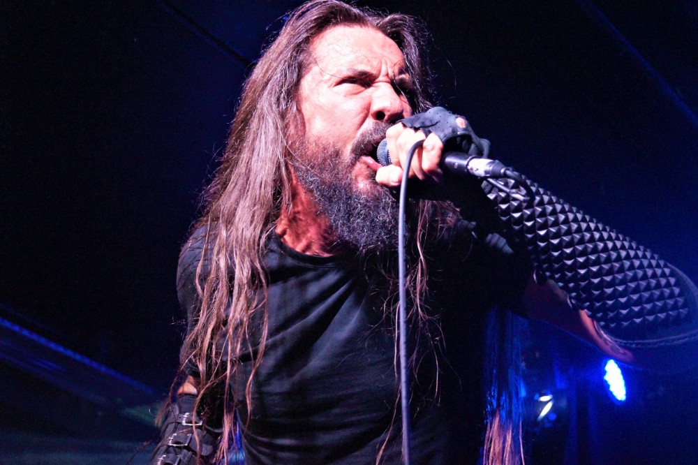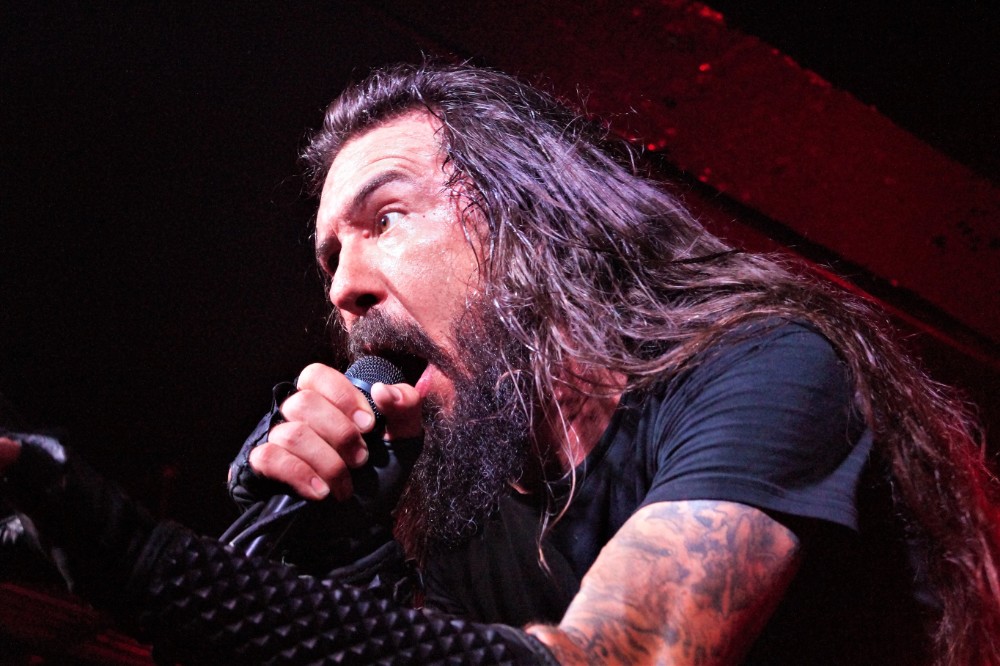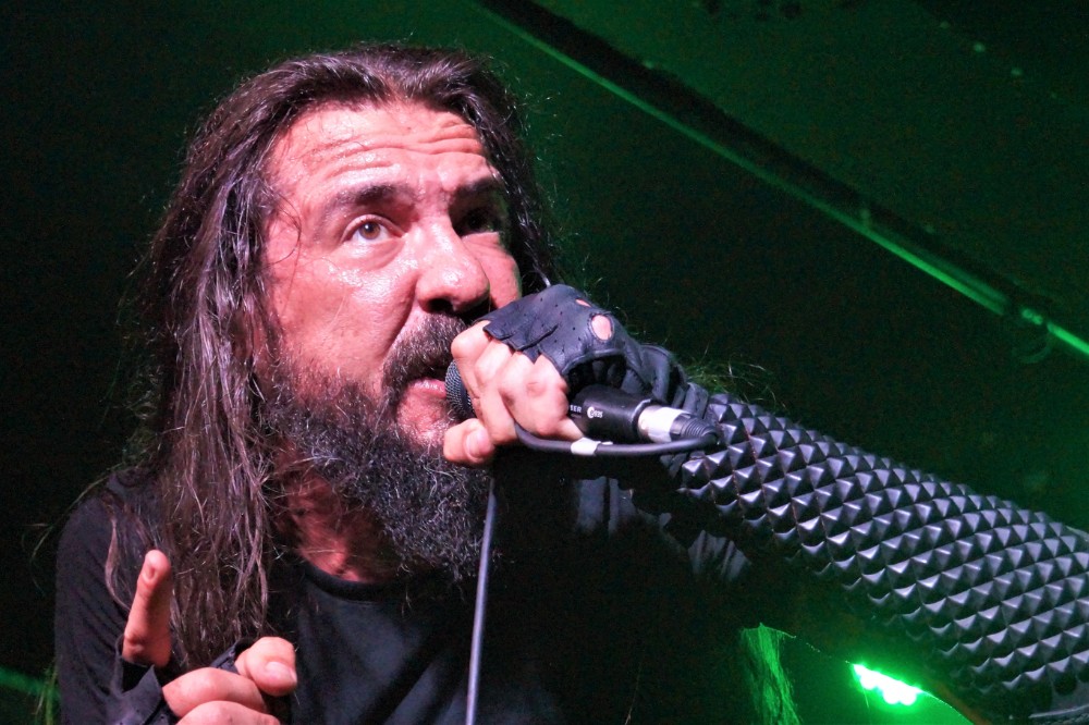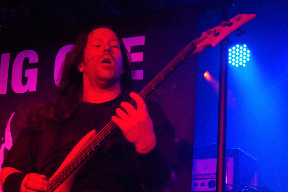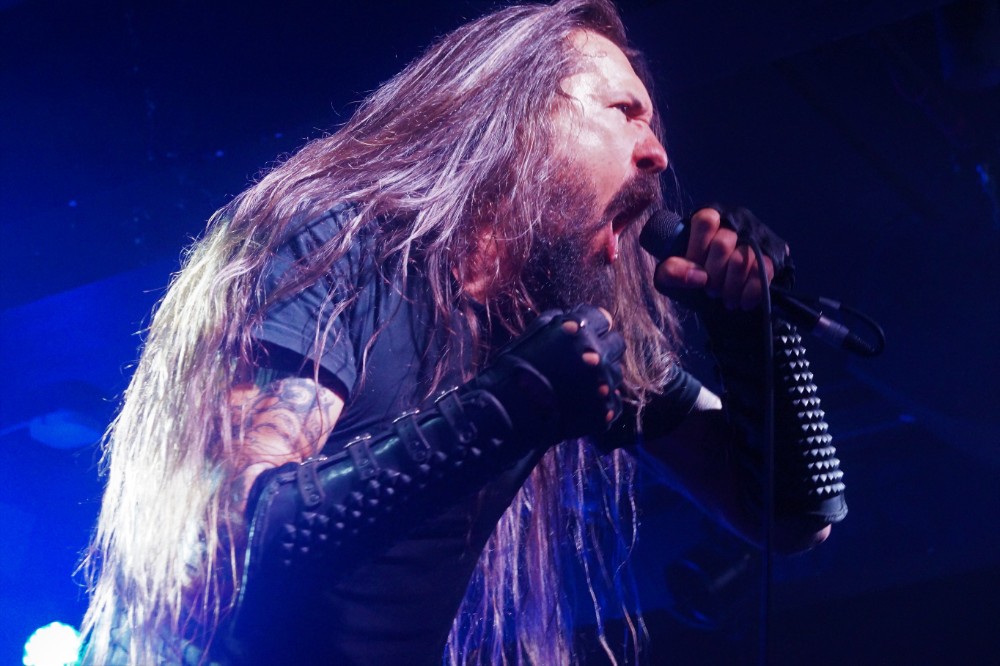 With the set in full flow one thing that really did grate on my nerves and seems to have popped up at gigs recently is people shouting ‘woo’ between songs constantly, it’s irritating or maybe I’m just getting old. Still with pauses kept to an absolute minimum the band went into “Seething With Disdain” a track that was a highlight for me with brilliant tempo shifts that had allowed the crowd to exercise those already well-oiled neck muscles to breaking point as the monstrous riffs carpet bombed the crowd. Another personal favourite followed, “Praise The Lord (Opium Of The Masses)” and continued the strafing assault of riffs and Trey’s unflinching ability to batter the audience was perfect and left only the sonic butchery doublet of “Your Treachery Will Die With You” and “Kill Your Mother, Rape Your Dog” both of which had shirts devoted to them you could buy on the night. The former was announced by John as “fuck shit up” as if the place needed that as the ceaseless energy of the crowd gorged on the copious blast beats and deluging riffs of the guitarists. John playfully asked us to guess the last song which they did of course and the last 60 seconds of the set was utter bedlam. As the band exited we were left with the dulcet tones of Kool And The Gang’s “Celebration” which the crowd sang and danced to, again surreal indeed.