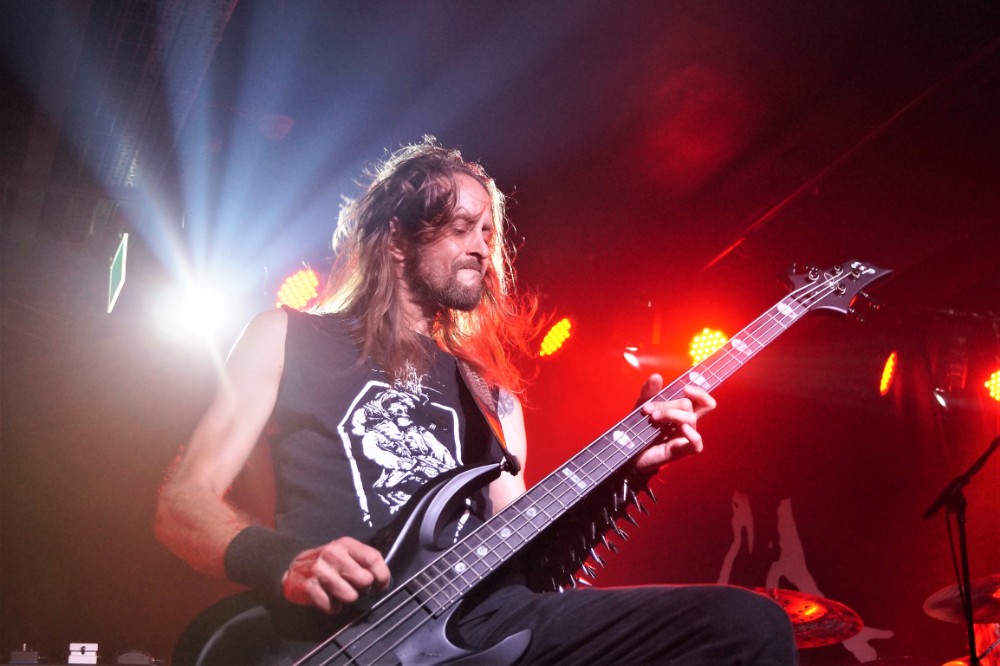 Wow, with the bar being set so high by Goatwhore, crossover thrashers Toxic Holocaust (the only band I’d not seen before on this bill incidentally) had the unenviable task of following the Louisiana lunatics. With no warning the trio strode on stage and blasted into “War Is Hell” as a tsunami of energy enveloped the crowd from the musicians especially from Joel Grind, whose razoring riffs galvanised the seething pit into tumbling action. Shouting “Manchester you are fucking awesome” they launched into “Wild Dogs” as a hardcore stance was detected due to the ferocity and aggression of their music. Toxic Holocaust were not about finesse, they’re about causing maximum sonic damage as Joel announced that this is for the headbangers and blasted into “In The Name Of Science” with its hyper speed and I marvelled at the stamina of their drummer. Toxic Holocaust were punishing, as the frenzied “Nuke The Cross” initially mauled the audience before dropping in a mid-tempo break before closing their nihilistic set with “Bitch” with its old school metal like riff that owed plenty to acts like Venom, Tank and Warfare. If you didn’t know who Toxic Holocaust were before their set you definitely did after as their sonic slaughter was a barrage of primal thrash terror.