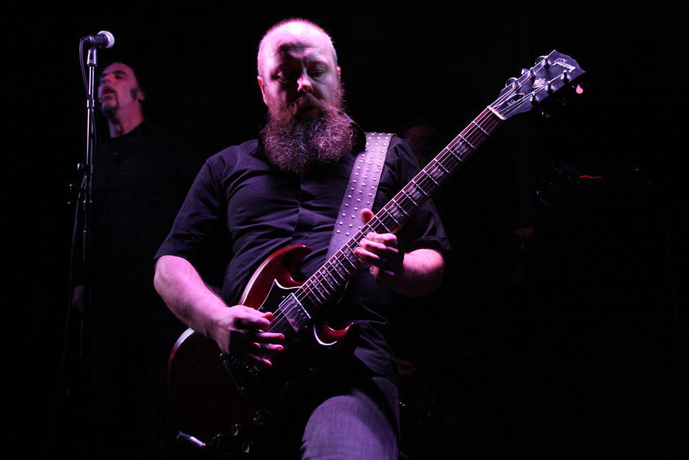 The Ocean are playing upstairs and smokers share the courtyard, not that many are out on their side. I would have loved to pop upstairs and catch a bit of Arabrot but alas there is no way through. No worry though down here we have epic Yorkshire doomlords Solstice who have come down the M1 in the other direction to serenade us. On paper this is a bit of a round peg in a square hole but with 1st album in 20 years ‘White Horse Hill’ destined for many end of year playlists expectation is high. It’s good to see Daryl Parson ex of The Enchanted in as new bassist, of the others, well Rich Walker should certainly need no introduction. The title song of the new disc is aired and the stage lights are up high, well this makes a change, a band not hiding from the light, great as far as photos are concerned. I don’t mind admitting that the classic traditionalism of Solstice is not exactly my bag but then again that’s part of the appeal and when you see a band giving their all and dripping with quality, playing in such a heartfelt and passionate way whose to complain. The audience does not seem alienated ever and everyone loses themselves, to some this is adoration bordering on rapture.