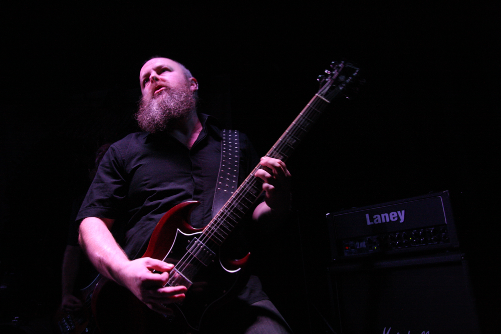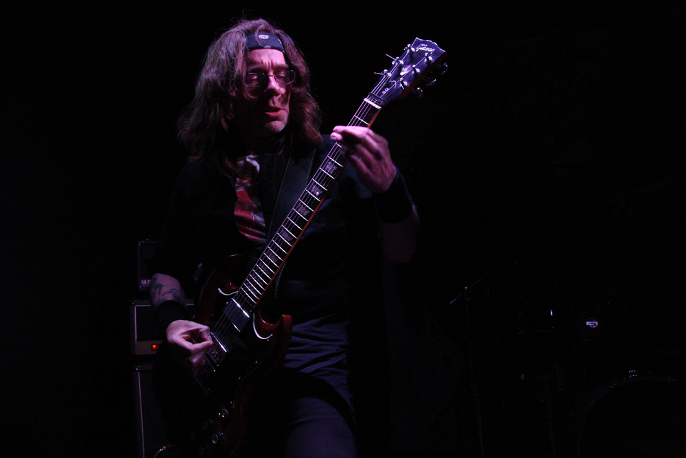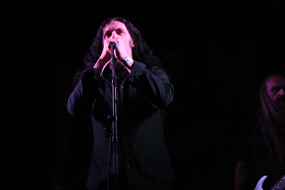 The big vocalist Paul Kearns seems to gain confidence as the set progresses and is belting out his parts in style, they are definitely the cleanest thing in this venue tonight. We shoot back decades and The Sleeping Tyrants is a classic that is full of flowing and weeping guitar lines, the old guard and fans lapping it up in particular. Solstice don’t particularly play short songs and again the set seems over far too quickly for many and I guess they will be able to play a bit more the next day as they have a free show at The Devonshire Arms too whilst they are down here. ‘Cimmerian Codex’ bears down with a thick stomp and leaden groove, time to lose ourselves one last time and sway in its hefty grip.