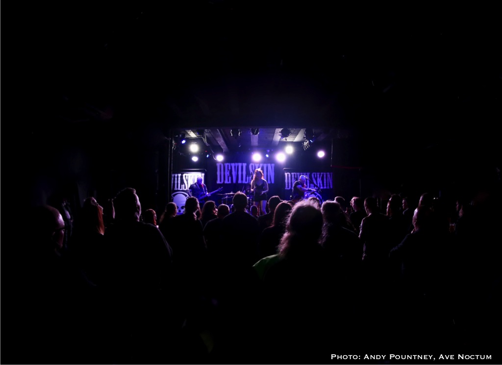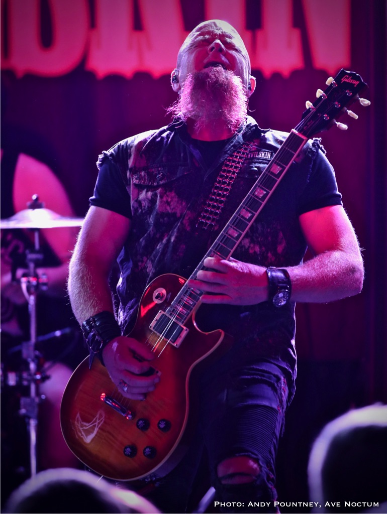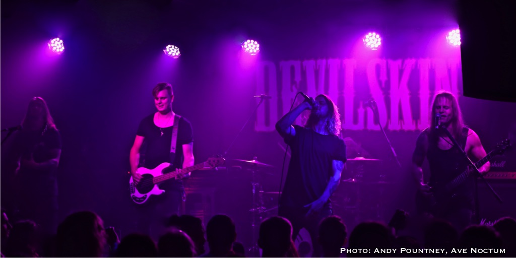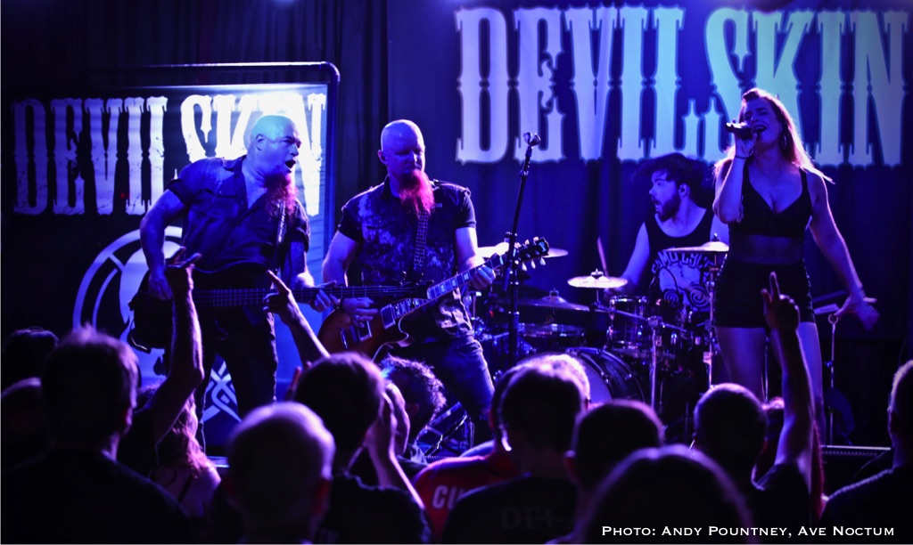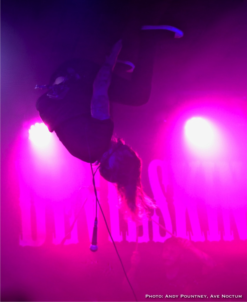 As I said earlier I saw Devilskin on their previous tour and was eager to see what they would do on this new tour especially as there was no new material unless you had been watching fan filmed YouTube videos as a sneak preview. With an eerie intro playing the band walked straight past me to the stage and launched into “Pray”. Immediately it was apparent that Jennie’s vocals were nowhere near loud enough but this was quickly rectified. As ever her stage persona was immense as she smoothly moved from clean vocals to deeper tones, and one thing I admire about her is that when it is time for the guitarists to their thing she steps back and gives them the space to do so. “Elvis Presley Circle Pit” hastily followed as the power intensified despite the track slowing down a tad, you could even say the track had a slight death metal quality due to its density as the set powered into “Limbs” retaining the mid-tempo tunes for the time being. Both guitarists looked like Scott Ian lookalikes or maybe Kerry King, although I am perhaps only say that because I went to the Slayer show later that week. Jennie announced a new song titled “All Fall Down” succinctly keeping chat to a minimum preferring to talk through the music as the song had a sleazy riff before relenting to a gentle beat and emotive vocal delivery.