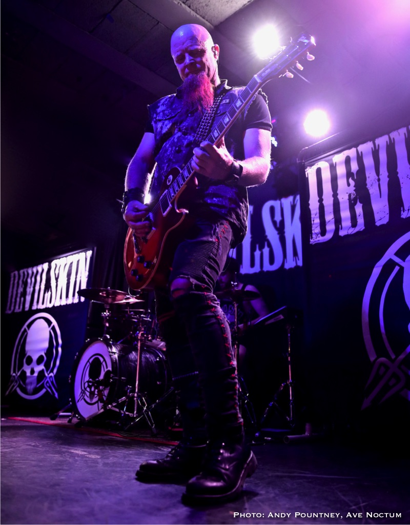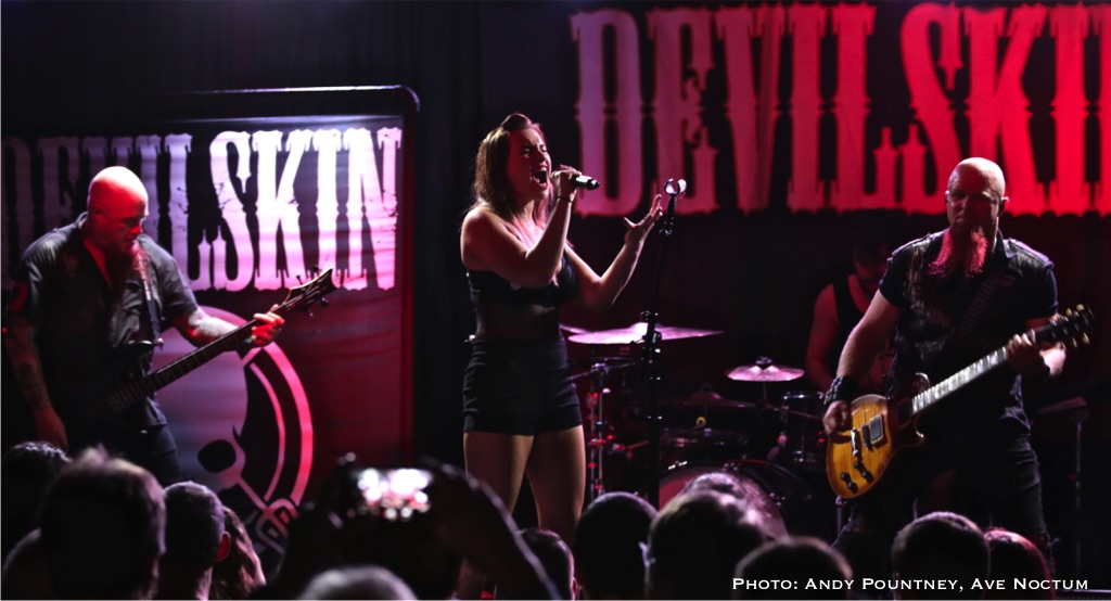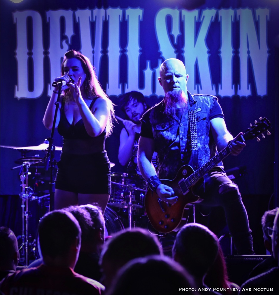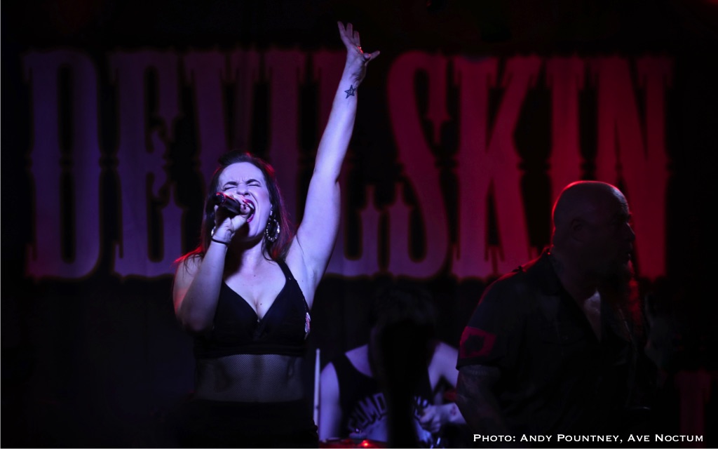 As I said earlier I saw Devilskin on their previous tour and was eager to see what they would do on this new tour especially as there was no new material unless you had been watching fan filmed YouTube videos as a sneak preview. With an eerie intro playing the band walked straight past me to the stage and launched into “Pray”. Immediately it was apparent that Jennie’s vocals were nowhere near loud enough but this was quickly rectified. As ever her stage persona was immense as she smoothly moved from clean vocals to deeper tones, and one thing I admire about her is that when it is time for the guitarists to their thing she steps back and gives them the space to do so. “Elvis Presley Circle Pit” hastily followed as the power intensified despite the track slowing down a tad, you could even say the track had a slight death metal quality due to its density as the set powered into “Limbs” retaining the mid-tempo tunes for the time being. Both guitarists looked like Scott Ian lookalikes or maybe Kerry King, although I am perhaps only say that because I went to the Slayer show later that week. Jennie announced a new song titled “All Fall Down” succinctly keeping chat to a minimum preferring to talk through the music as the song had a sleazy riff before relenting to a gentle beat and emotive vocal delivery.