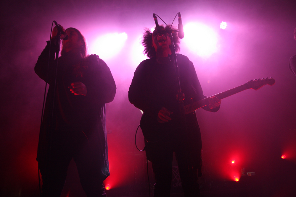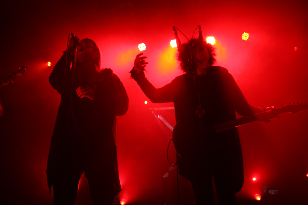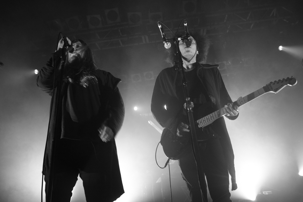 I certainly wasn’t the only person expecting a meteoric rise to fame for Zeal And Ardor, you could predict they had something special about them just hearing a couple of tracks from their debut album. They have quickly gone from smaller venues to the Electric Ballroom and even played Reading And Leeds festivals showing what a crossover appeal they have, the audience is mixed too but as the band come on stage to rapturous applause we are all united. With the stage in dark hues and the band wearing hoodies it’s a shady entrance in more ways than one and also a striking one as they power into ‘In Ashes’ with dense trembling sound and blinding vocal harmonies sweeping us right off our feet. Black and blues combine the drumming hits definite blastbeats and singer and muse Manuel Gagneux powers out his parts. The rest of the group should not be undersold in the slightest and by the time they hit ‘Servants’ the whole much busier venue is pumped and we are all aware that we are in for a special show tonight. Slinging a massive bass stage left Mia Rafaela Dieu hits the low end, the combined vocal talents of the lead and backing singers Denis Wagner and Mark Obrist are phenomenal and we are transported to bygone times swaying in the grip of the hymnal and fevered qualities of the music. If there were any cobwebs up in the rafters of the venue they are shaken off and somehow moving front to back and then back to the barrier pint in hand I can see the near adulation of the audience, those in the middle even getting a pit going as the music seethes and stews our senses.