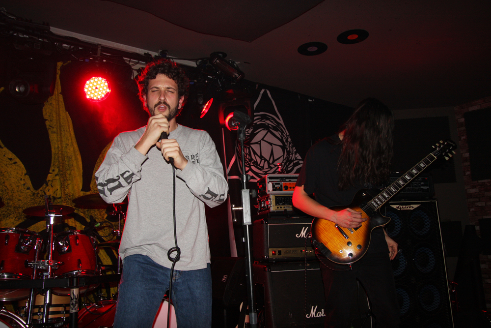 First up are Solleme, a fairly young looking trio from Brighton. This quickly establishes itself as sludgy and distempered noise with a singer throwing musical fits. It’s suitably loud and abrasive and anyone napping in the corner is unceremoniously woken up. The red lighting only intensifies the anger as the vocalist grips the microphone and yells his head off into it. The drummer may be using a side kit on the stage rather than the main one but he hits it hard making every slow percussive blast count. There are some occasional bleak tones giving things a bit of breathing space but on the whole this is slow torture or as their album title puts it “Infinite Violence.” The lack of bass player didn’t seem to hamper proceedings, drums and vocals on the whole ruled supreme in the mix, guitars chugging in when they got the chance. Solleme only seemed to have time to play about 4 songs but frankly that felt enough, they definitely left an ugly mark on us.