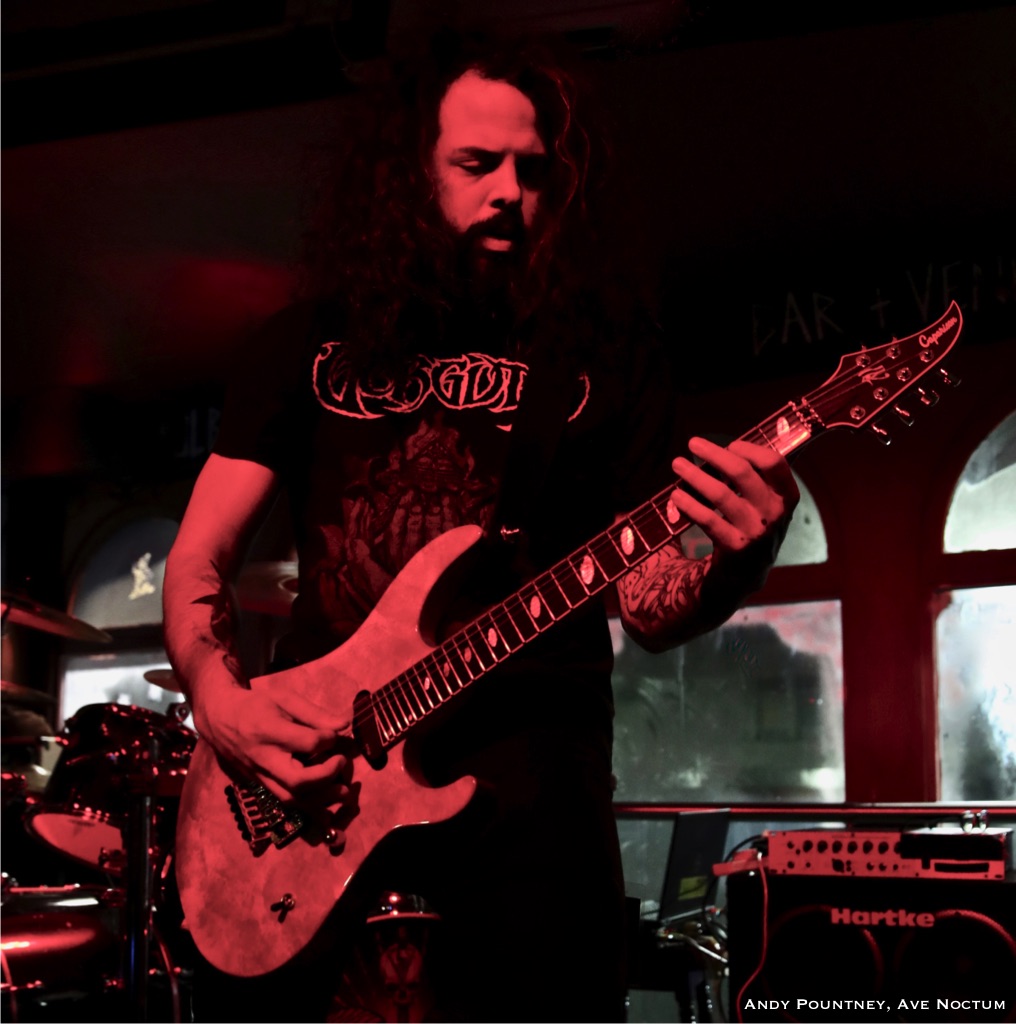 Slowing things down the band played the 2016 track “The Final Failure”, which was announced hence the title, it initiated with a funereal like lead that built superbly with every second right before the blast jutted in. The clean vocal insertion caught me out but was a great addition as the band looked to be in a world of their own and distanced from the us all, as the track manifest a cataclysmic tempo change that fed in a cracking lead break and blast beat; mesmeric and breath-taking is all I can say. With only a short set Ken said this was the last song but it’s a long one as it gradually escalated from a tranquil peace with ever increasing power before diverting abruptly into the inevitable blasting phase. As the song gathered momentum both guitarists joined forces to headbang together before the track delved into a semi acoustic section. The textural components of the song were magnificent and I was glad I bought a shirt before they went onstage.