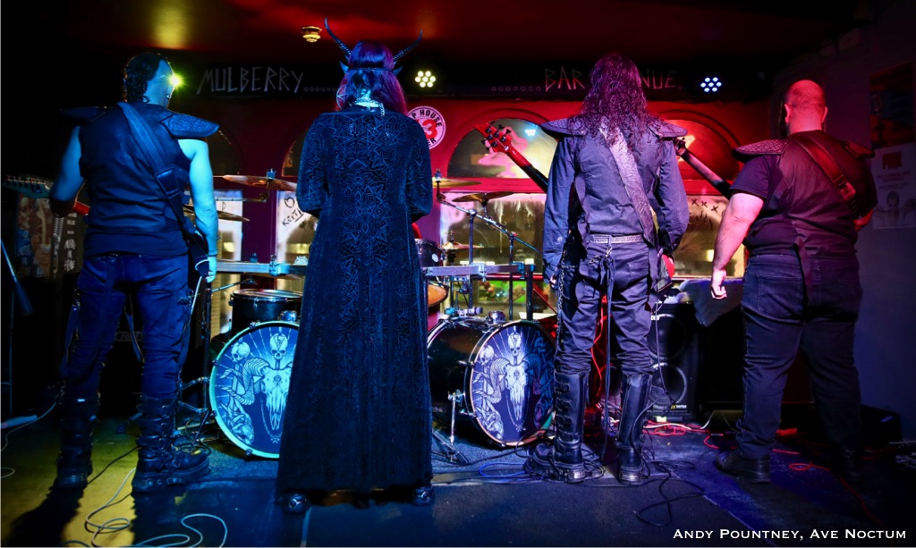 Originally this gig was planned as an all dayer, according to the flyer, but eventually turned out to be a three band event held at a bar near the Sheffield Academy. Thankfully with the gig taking place on a Sunday the Christmas traffic was virtually zilch which meant a relatively easy journey south from West Yorkshire. With doors set at seven we set off fairly early expecting the first band to play at around 7.30 mark but having arrived it appeared that only The Infernal Sea and Abigail Williams had arrived judging by the merch that was available, which didn’t bode well. The Mulberry Bar was a new venue for myself and was your typical pub with the back area designated as the gig area where the bands set up to play, though the stage was merely a step in all truthfulness. As time was passing Maltese act Martyrium finally arrived and didn’t look too happy when they did as they dumped their gear, sorted themselves out and set up the stage to play. They got changed too, in the disabled toilet I believe, as the guys donned some armoured like garb and new frontwoman, Mikaela Attard, kitted herself out in a cloak and face mask plus a custom made costume which you can view in the photo gallery and I’ll leave at that.