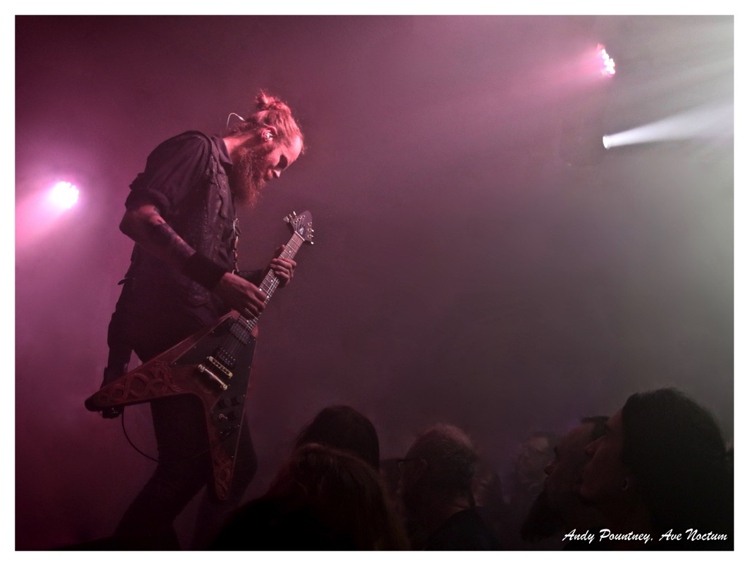 ‘Hula’ and ‘Ljósfari’ continued with epic soundscapes swathed in melancholy sandwiching a brief time out to introduce the band and welcome the crowd. My all-time favourite Sólstafir track ’Fjara’ followed. An understated masterpiece with sublime harmonies and graceful melodies, it never fails to grab me and make me feel emotional. Tonight was no exception and as I looked around me I saw that many people had their eyes closed, gently nodding their heads soaking upon the atmosphere generated by the music.
