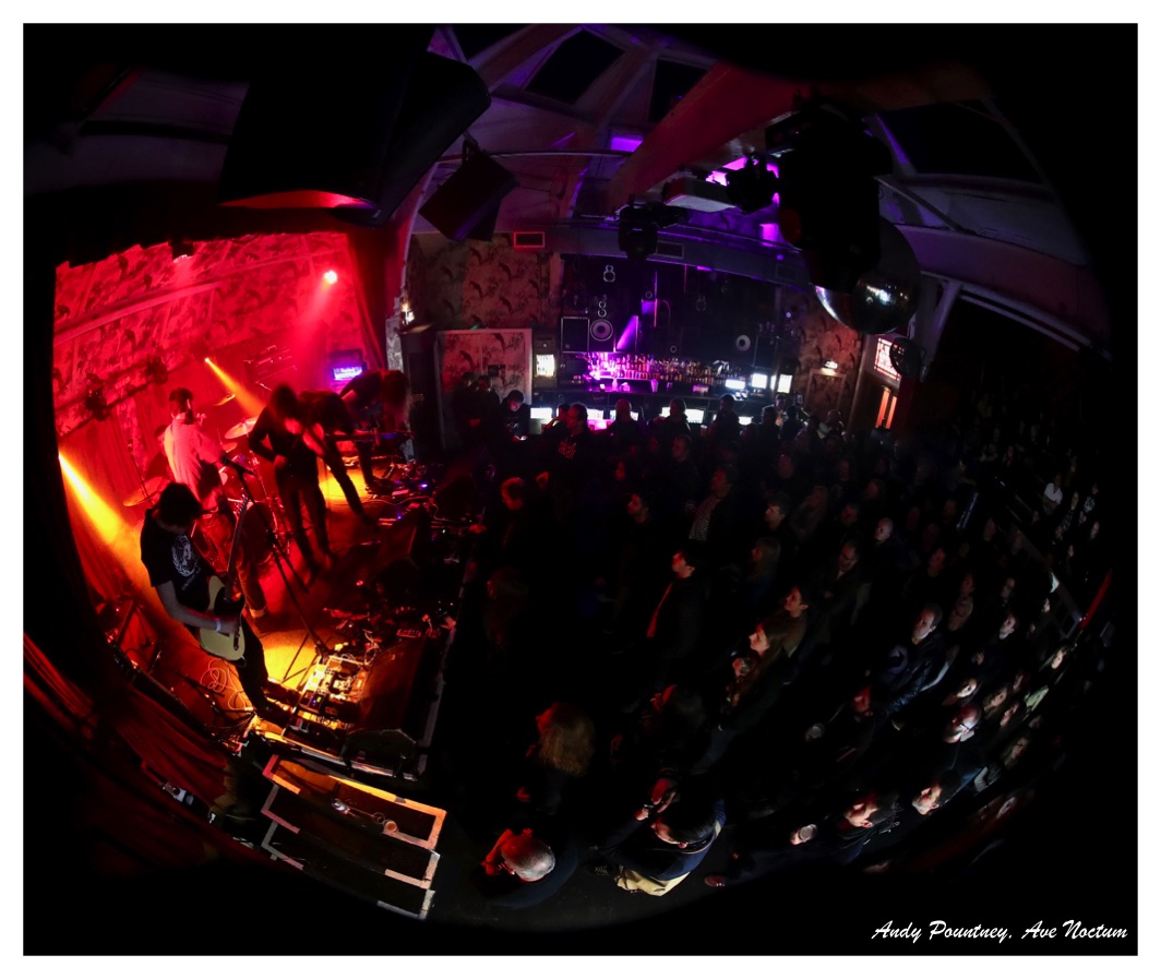 I grabbed a pint and took up a spot for opening band Talons, a six piece from Herefordshire who proceed to deliver an intriguing instrumental blend of rock, post rock and post metal, with a hint of folk in places courtesy of the strings. The band were barely illuminated by red backlighting creating a claustrophobic atmosphere forcing the whole focus to be on the music. The room soon filled with an appreciative crowd and as the set progressed, I felt that more classical influences came to prominence but perhaps my ears were just becoming a little more accustomed to their style. As the set progressed, the grooves became hypnotic with heads nodding subconsciously around the room. All too soon, the set was being brought to a close with ‘Quiet’ the closing track from their new album ‘We All Know’. I think it’s fair to say Talons cut their claws on a new set of fans tonight.