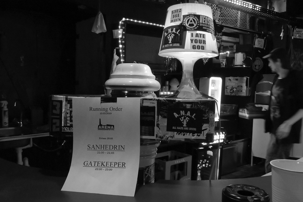 Don’t you feel right at home and among your kind in the dodgy atmosphere of an underground club? With the stickers, the graffiti, and the smell of yesterday’s spilled beer? I do. I had never been to the Arena in Vienna before, but as soon as I got there, and saw the familiar look of every independent cultural centre in central Europe, I got a warm feeling around the heart.