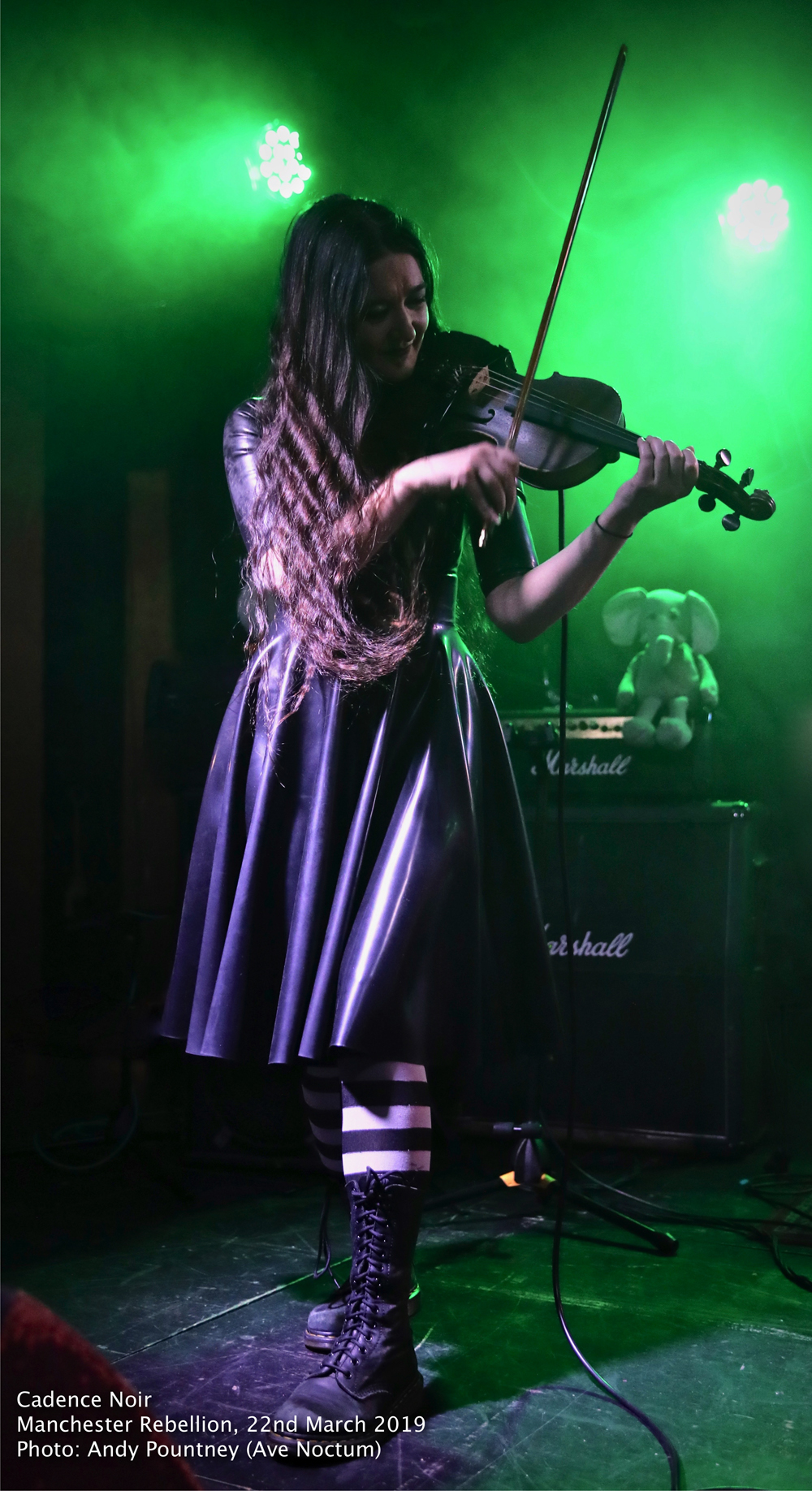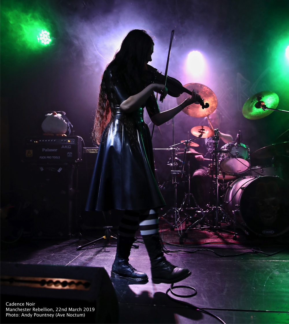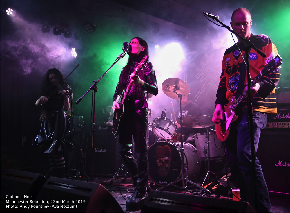 Unfortunately an accident on the M62 meant that I only caught the last few songs of Cadence Noir and their intriguing gothic laced, violin heavy, folk ’n roll. The first thing that struck me was that they didn’t seem able to decide on their image with goth gear uncomfortably rubbing shoulders with sports wear. I usually don’t care what a band wears but on this occasion I found it to be a little distracting which was a shame as musically the band were on form.