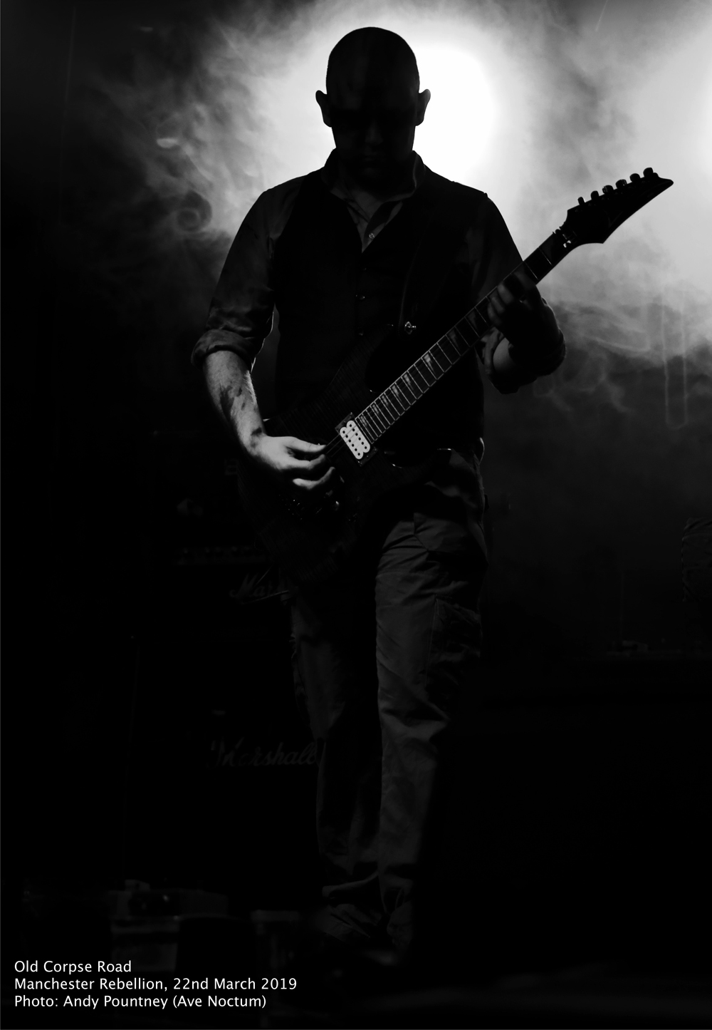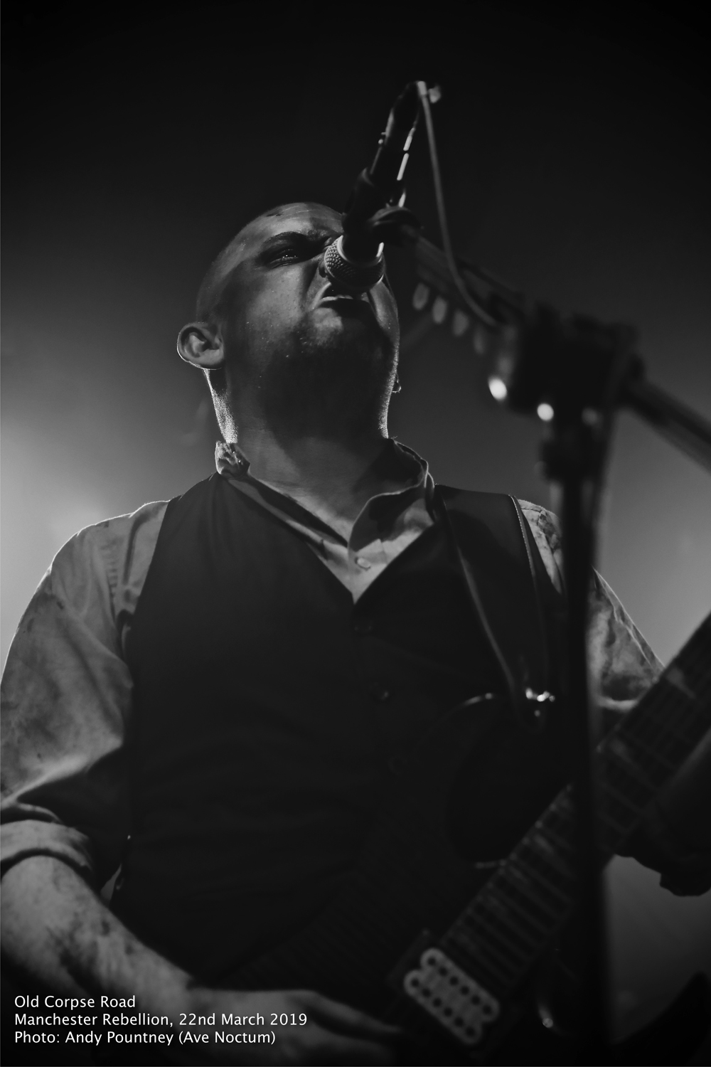 A quick turnaround left just enough time for a pint before Old Corpse Road and their undeniably British brand of black metal. Taking to a stage swathed in dry ice with subtle backlighting, the band appeared as spectral silhouettes while their trademark triple pronged vocal attack was unleashed, swinging from short high pitched jabs to dulcet spoken word interludes on tracks such as ‘The Whispers Of Long Meg Through the Solstice’. Although undeniably black metal, their sound is less abrasive then many of their peers with haunting keyboard melodies adding extra depth creating a sound that envelops rather than assaults. Towards the latter portion of the set, unreleased track ‘Harbingers of Death’ was played with both the band and crowd looking to be enjoying themselves. This was typically Old Corpse Road, powerful, abrasive and yet refined boding well for the next album.