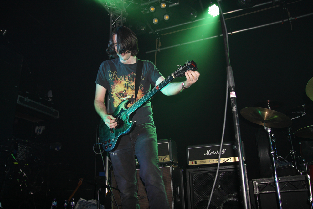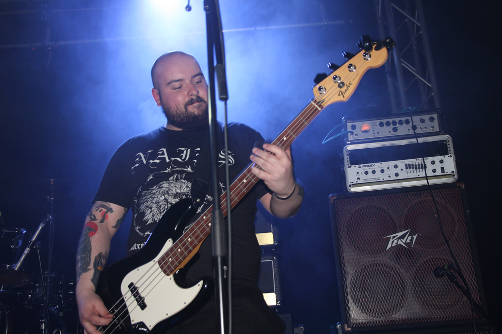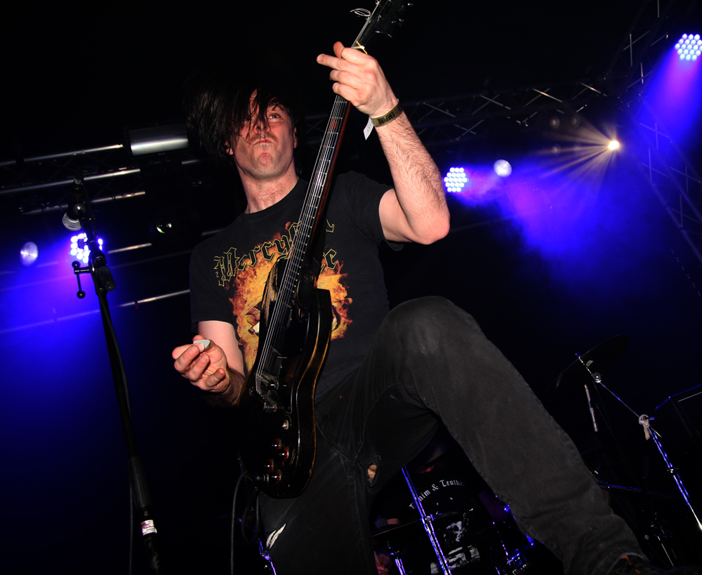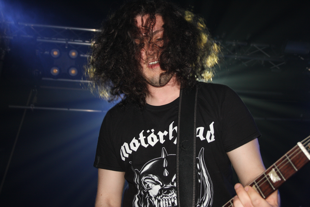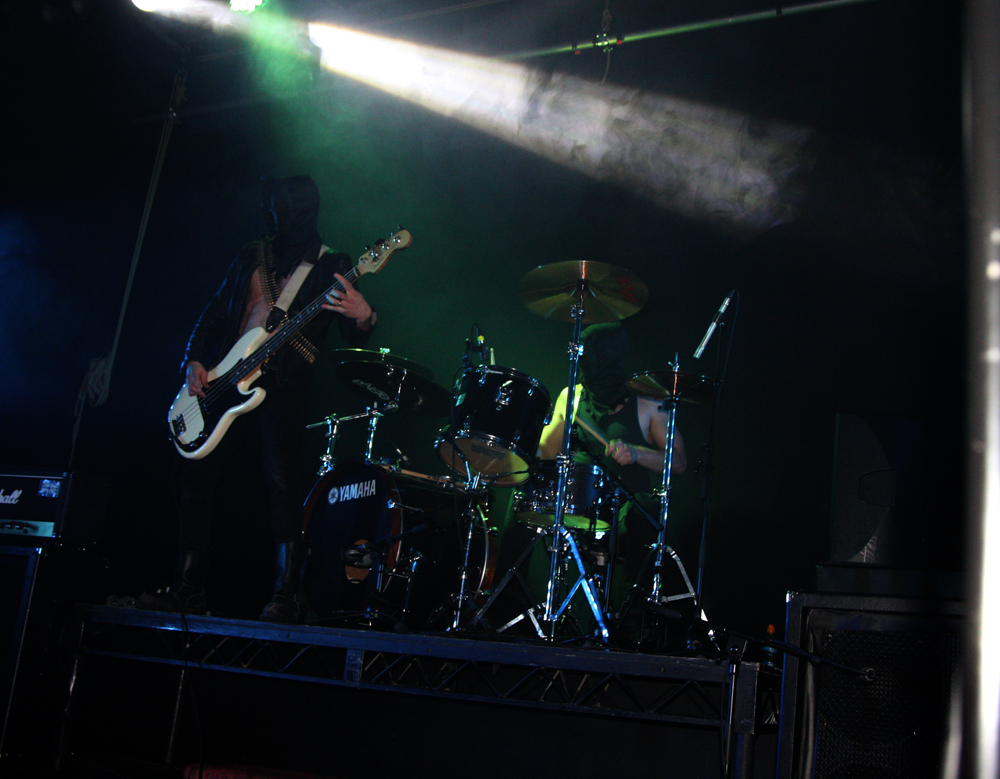 Hellripper from Scotland is principally the act of James McBain and a solo studio proposition. He has released a fair bit of material including many a split, a compilation and debut album ‘Coagulating Darkness’ Obviously expanding things with extra players on stage the band are quick to rip into hell, the first thing that particularly struck was the meaty, thick scuzzy bass sound, standing near the player and speaker it gave up a nasty cutting edge. Songs come quick and fast with a bit of chaos and feedback between numbers, this had a very fast flowing DIY like sound and approach and it was nigh impossible not to get swept up and caught along with it all. It’s basic, primal and energetically focused hitting a bit like a hammer round the head and succeeding in getting the first bit of proper movement on the dancefloor. Short savage blasts like ‘From Hell’ delivered just what they suggested and what was necessary, nice and gnarly and whatever the new EP number was towards the end it went down well and left us in a bit of a mess; job done.