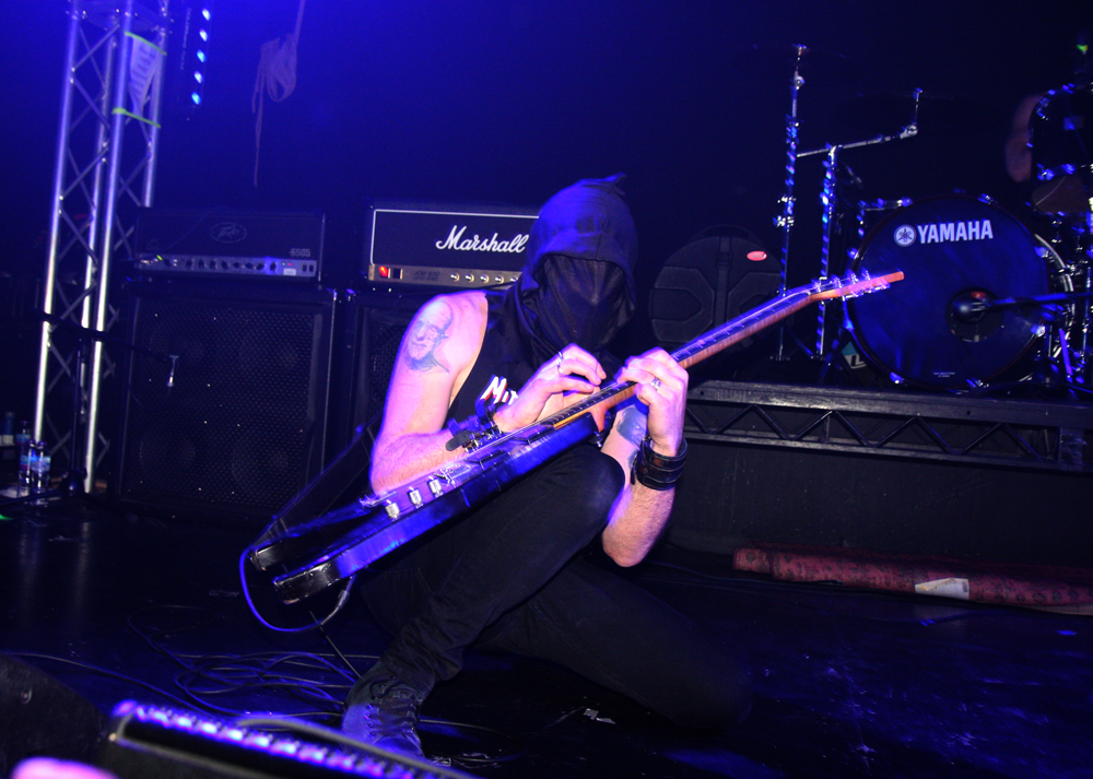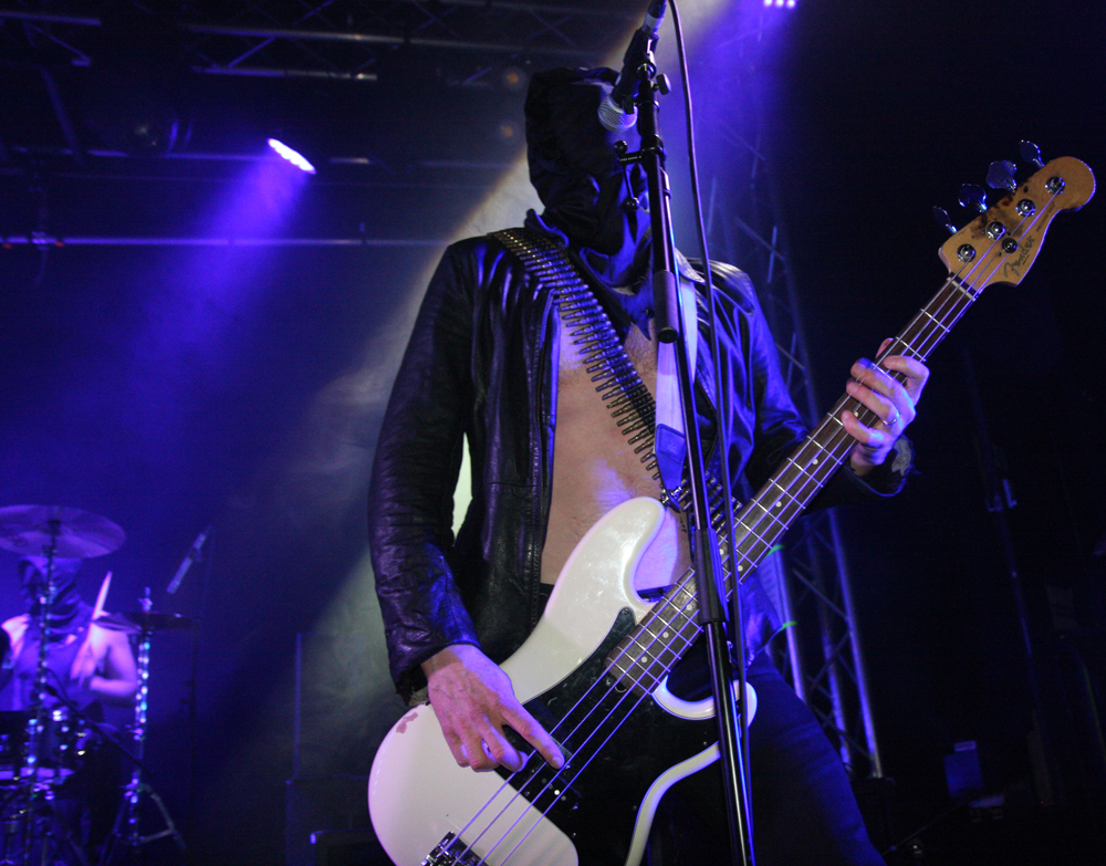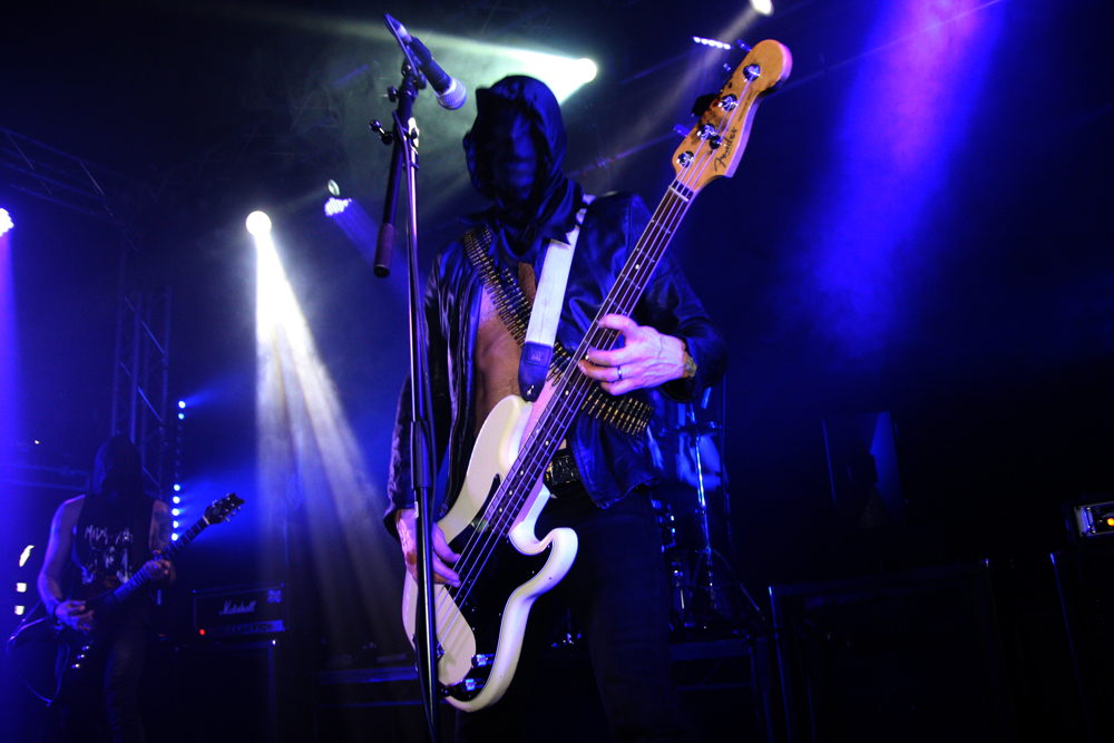 It all sounds good and scuzzy flying out the speakers, a certain uncouth charm and a black punk attitude makes it all spot on and just the way we like it baby. The pit fires itself up after a while and there are even a few hardy stage dive attempts. Perhaps this was somewhat brave as the vocalist seems like he would be quite happy to whip his bullet belt off as it hangs over his bare torso and help you on the way but everyone who gets up seems to come out unscathed. Some songs simply have to be played. The double whammy of ‘Satanic Royalty’ and ‘Lust Filth and Sleaze’ being a particularly potent pairing and providing a devilish stomp. A brief dousing in beer experience refreshes other parts and allows observing the audience pumping fists in the air and totally enjoying themselves down the front. I think we get just over an hour, there’s no real talking from the stage between songs but we guess the men behind the masks are enjoying themselves as much as we are, it’s hard to tell with faces covered. One late highlight is the blast of Necromania and it’s probably fair to say they pretty much played everything we could really have asked for. Hell has been well and truly ripped and all the bands were great, cut from the same sorta cloth giving us a memorable night out. Hopefully the headliners won’t be so long in coming back next time around.