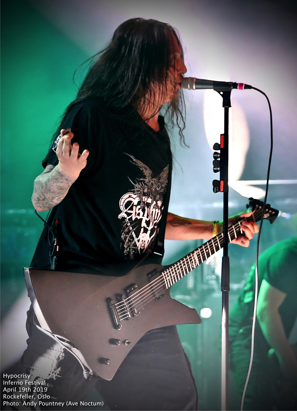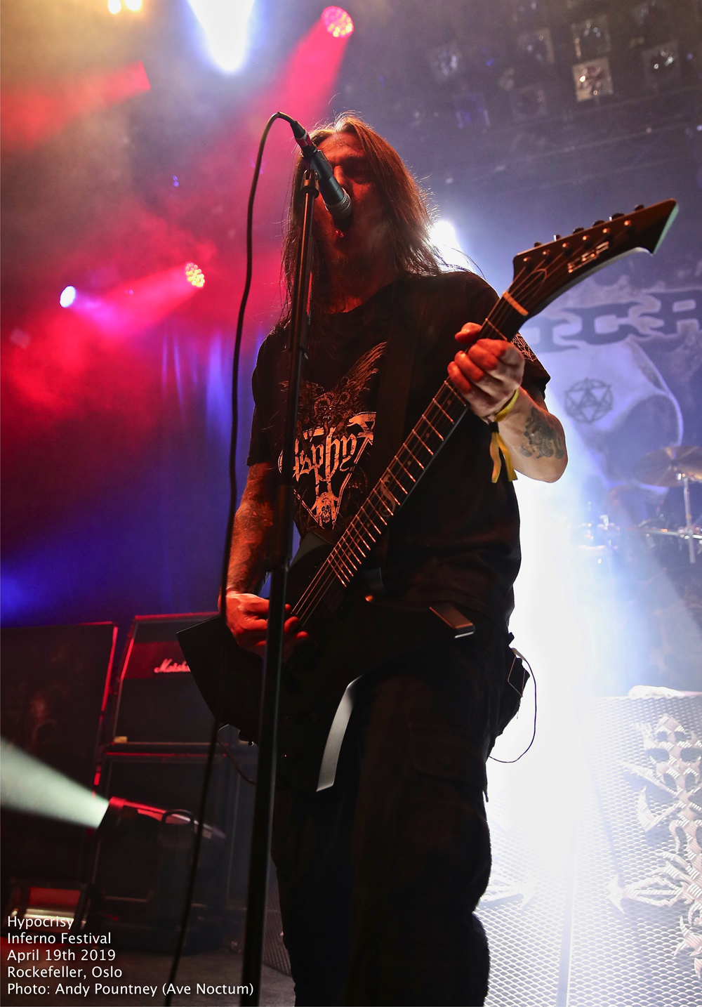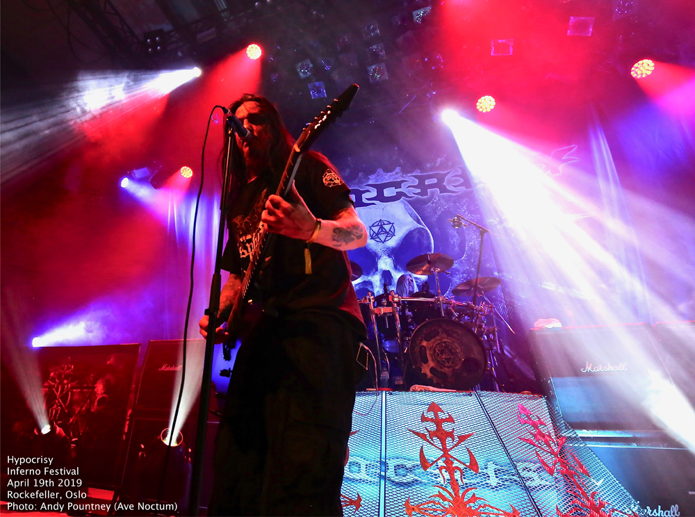 And so it fell to Peter Tägtgren and Hypocrisy to close the day with the first ever performance at Inferno. They will need no introduction to anyone who has read this far into the review and there was a palpable excitement in the air as the sold out crowd crammed into the venue desperate for vantage points.