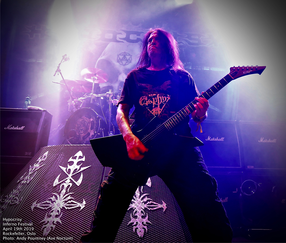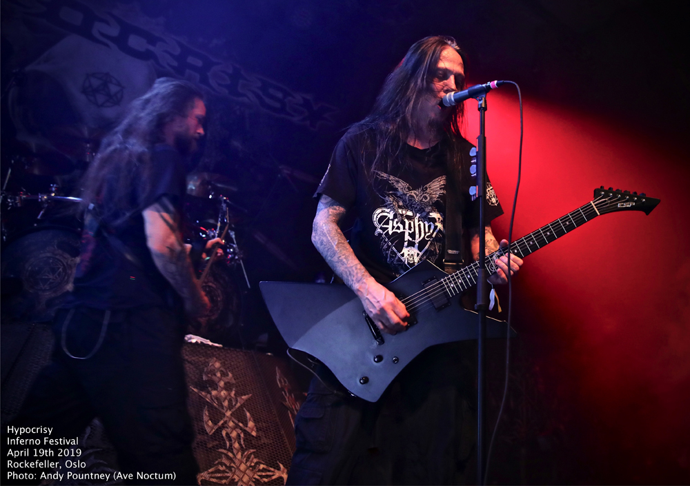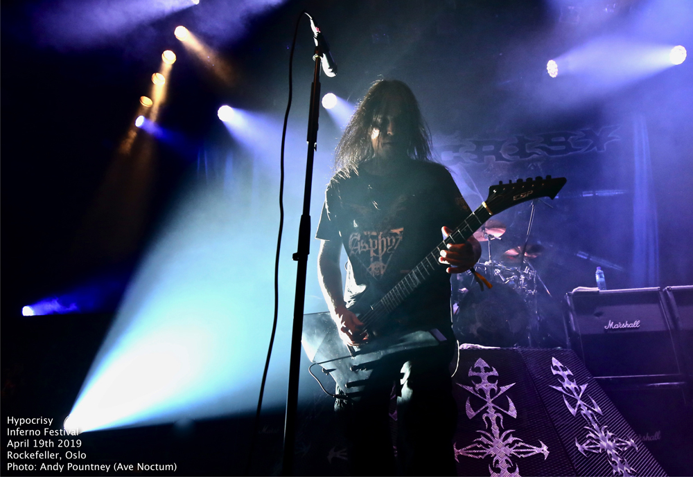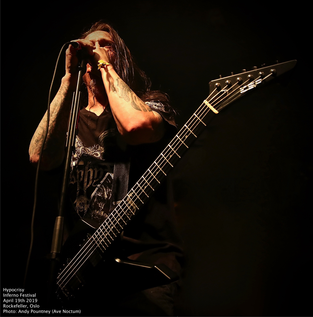 And so it fell to Peter Tägtgren and Hypocrisy to close the day with the first ever performance at Inferno. They will need no introduction to anyone who has read this far into the review and there was a palpable excitement in the air as the sold out crowd crammed into the venue desperate for vantage points.
