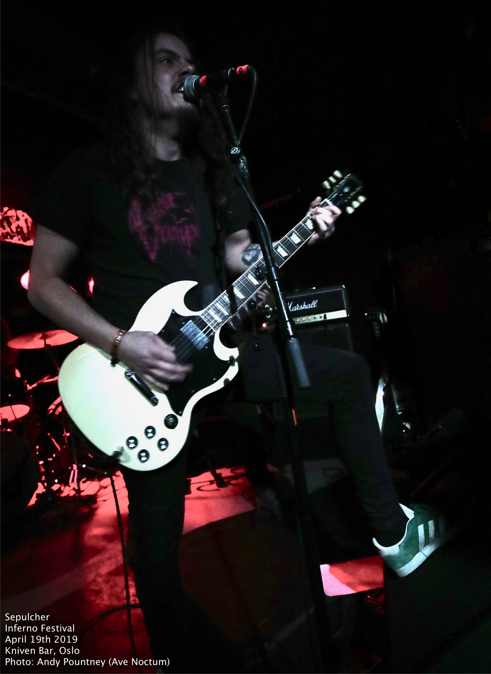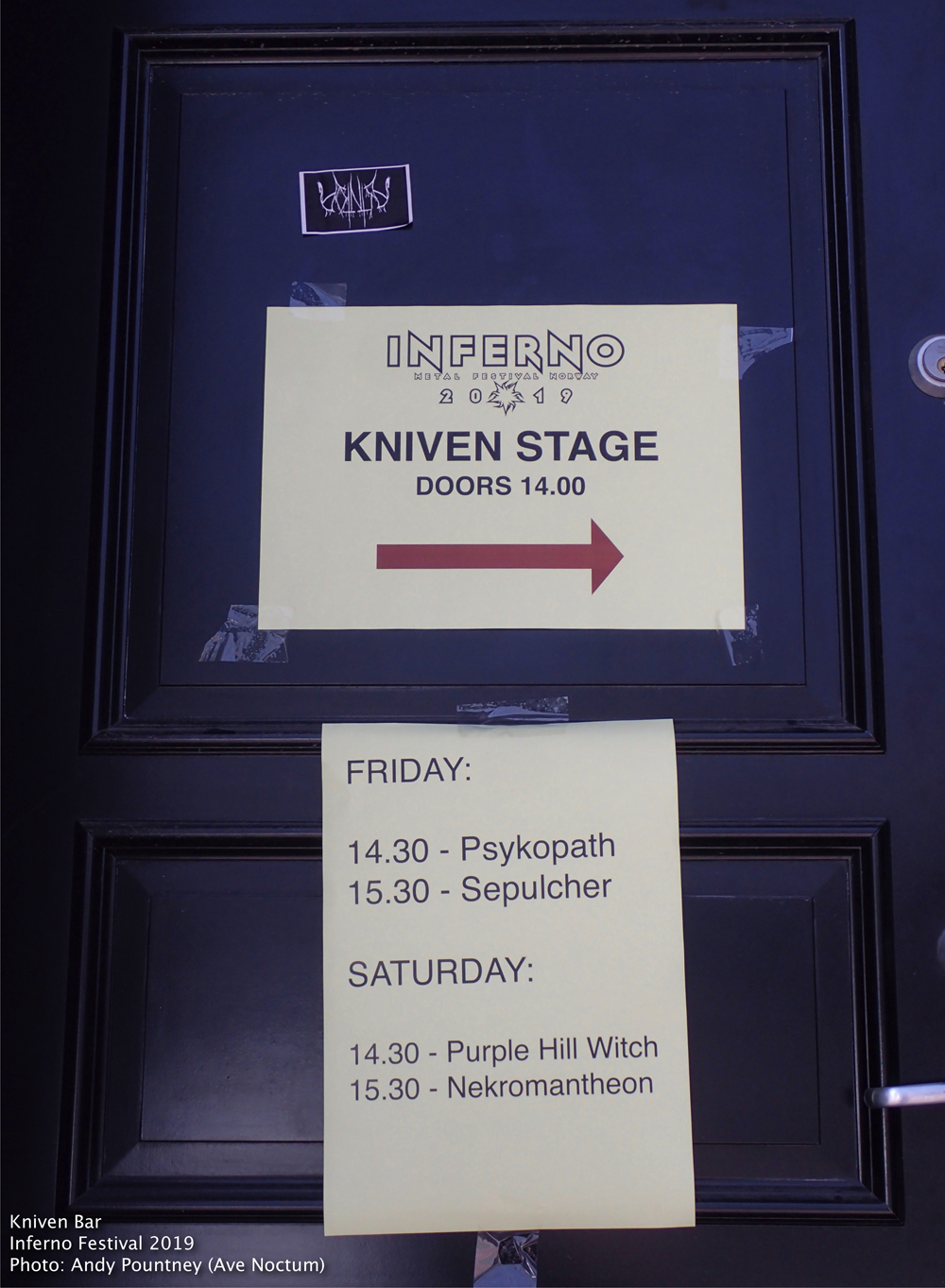 My second day of Inferno started with a trip to the Kniven bar at 1430 for Psykopath and Sepulcher who were playing during the afternoon prior to the main festival. I made my way to the venue and descended the stairs to the basement where the bands were to play. It was an intimate venue (in other words tiny!) and the stage was virtually non existent. The room was packed as Bergen’s Psykopath took to the stage and unleashed their loud and aggressive thrash to a wall of flailing hair. By the time their set was brought to a close with ‘Armageddon’ the hangovers had been blown away and the thrashers were well and truly warmed up.