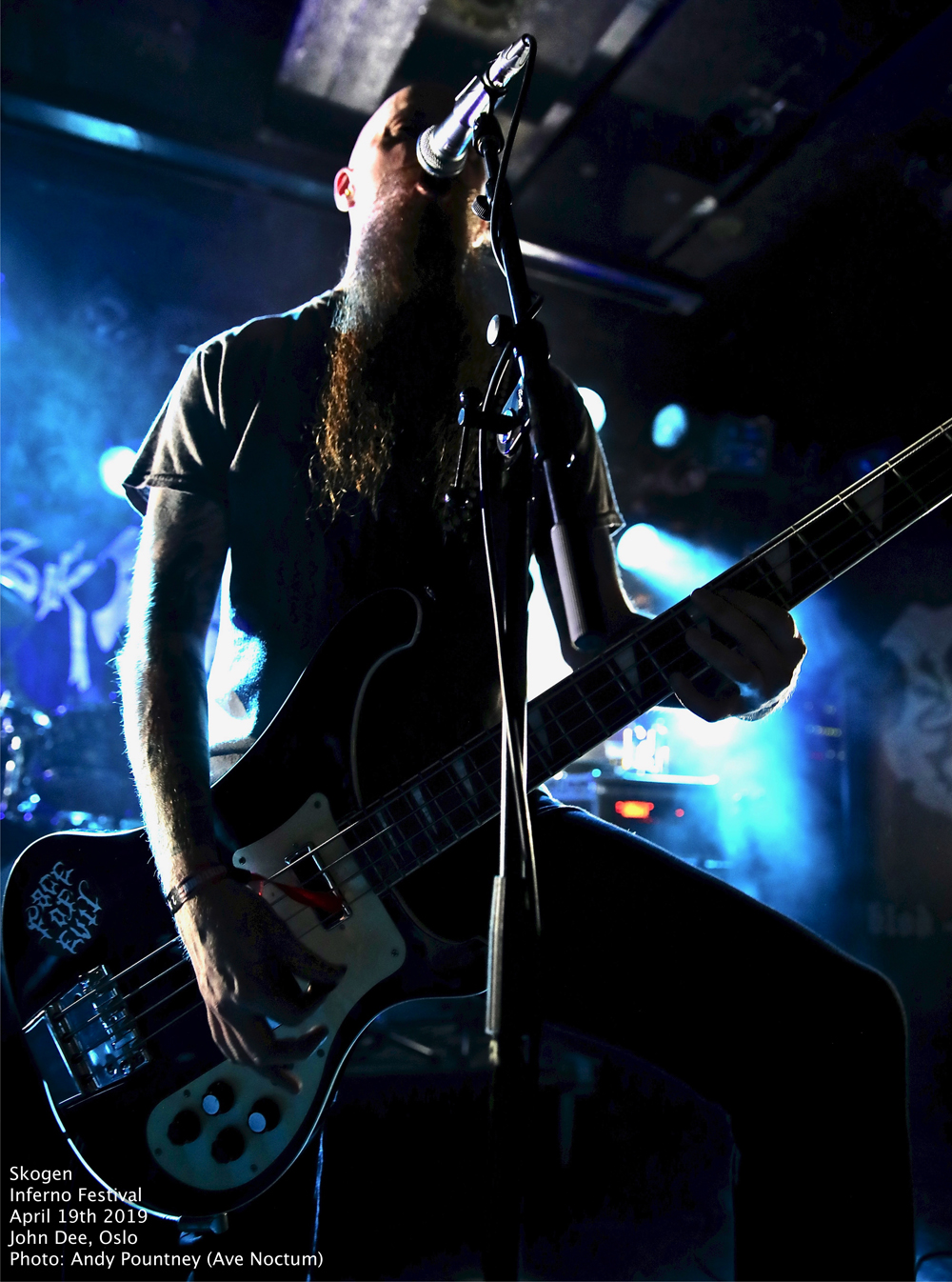 Downstairs in John Dee, Superlynx’s velvety doom floated around the room in complete contrast to the vicious assault that preceded it. ‘Vapour’ and ‘Hex’ worked well in tandem captivating the crowd. While not completely full, the room was reasonably busy giving the Oslo based trio a good reception at their first Inferno. As the set was brought to a close with ‘Breath’ and ‘Center’ I reflected that although I can’t get Superlyx to “click” with me when listening to their studio releases, live they are a completely different proposition and I thoroughly enjoyed their set.