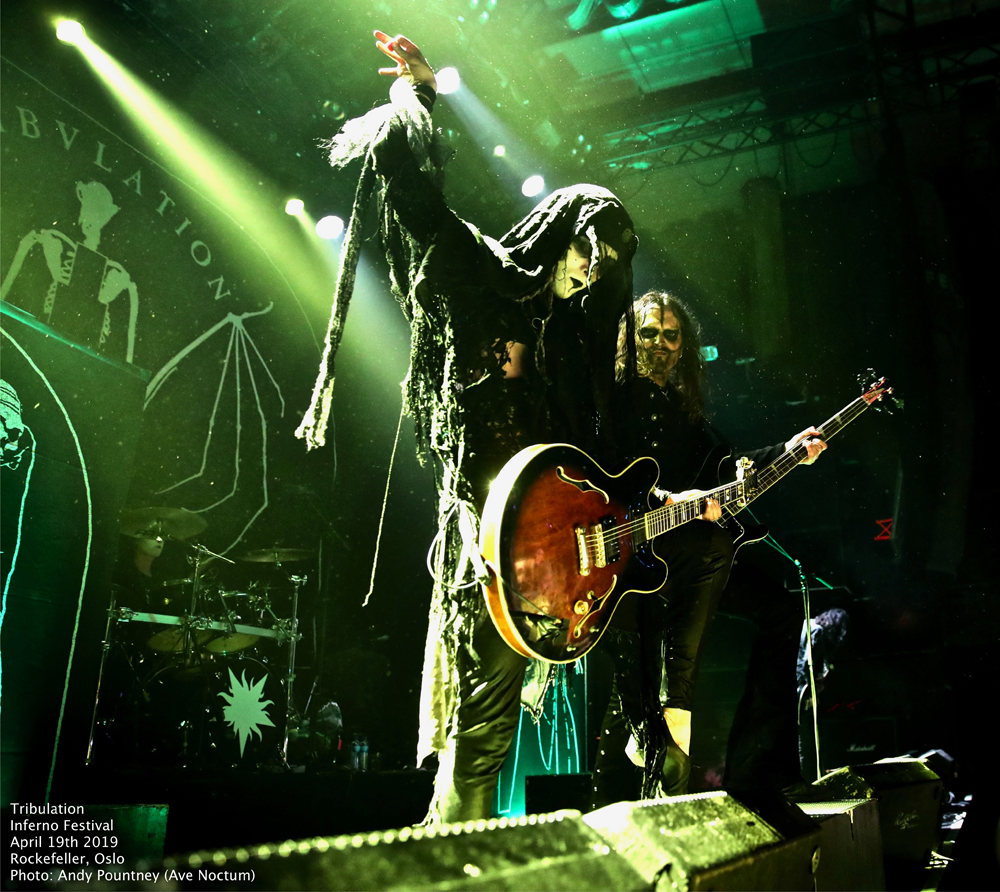 However, there was no time to dwell as Sweden’s Tribulation were about to make their return to Inferno festival, having justifiably graduated from the John Dee stage (2010) to the main stage this year. Incense burners helped set the atmosphere as their goth tinged melodic metal filled the room. The band looked like ghouls under subdued lighting, as the flamboyant guitarists danced around the stage looking to be thoroughly enjoying themselves. ‘Melancholia’ and ‘The Motherhood of God’ got the crowd eating out of the palm of their hands and the set went by in the blink of an eye.