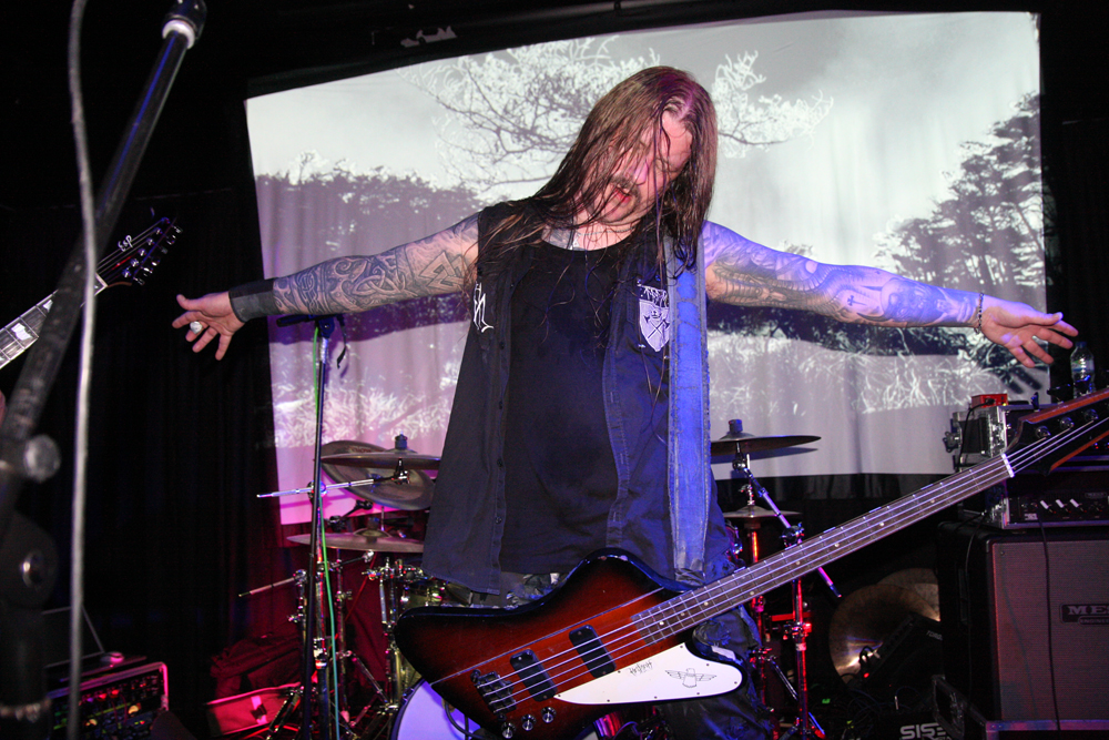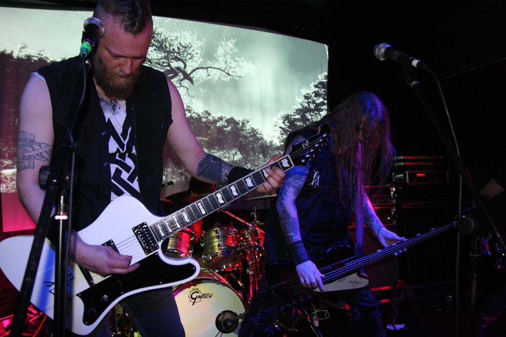 I’m not sure where the hell the Enslaved, Taake, Wardruna fans are all tonight but there seriously should have been many more in attendance as Helheim take us into more serious things. The new album Rignir is, as with pretty much everything they have released, fantastic and standing in front of the band with just a small crowd I felt somewhat overawed and privileged to be witnessing the headliners here. They had the backdrop showing black and white nature and all its harshness and might and frosty majesty was the musical order of the night to accompany it. Sublime riffs send shivers down the spine to match the cold imagery and the Norse vocals from V’gandr and H’grimnir really sound fantastic, Skaldic croons sweeping off feet.