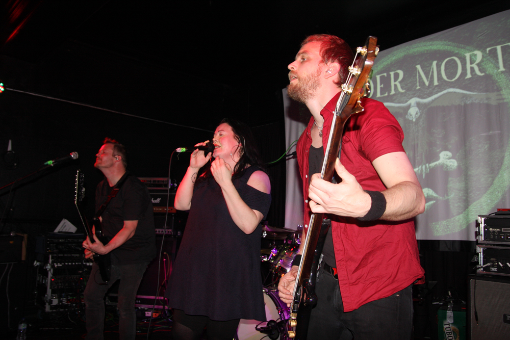 It’s been a while since I last caught Madder Mortem but latest album Marrow has been filling the gaps nicely and it is here we start. There’s a big backdrop on stage and the audience are now much keener to move to the front as we are infected by the progressive madness of Liberator. Agnete’s voice is strong and fills the room and the audience starts to bounce along with the singer who as ever on stage seems to be having the time of her life. Bass is nice and thick and the gravity and might of the song powers through us. From a whisper to a scream the vocals hit the rafters and we lose ourselves in songs that never stand still for a second. Otherworldly delights unfold and we are calmed with Until You Return introduced as an old fashioned ballad about missing someone when they are gone. It fair brings a tear to the eyes, that is until it goes mental and the knife comes out and stabs hard in the heart. Watching it with the noir etched touches I couldn’t help thinking it would have been a perfect song played at the bar at the close of an episode of Twin Peaks. There is a fair bit of in between chat from a very jolly singer, there’s one thing she doesn’t like though and that’s religion, cue Thy Will Be Done. A volatile song with plenty of bounce about it this one gets heads banging in a frenzy. New album title track Marrow tears us apart and the gorgeous harmony of Far From Home is another part that has us melting, at odds with it the skewed instrumental parts show a song of contrasts like the unique band themselves. You could have forgotten it is May Day but Agnete hasn’t dedicating Fallow Season in solidarity to all those wronged in the world, the giddy maypole twist hits the spot nicely. The suitably long set culminates with Underdogs leaving us more than a little dizzy and closing thoughts of what a friendly bunch seems an apt way to leave a highly memorable show.
