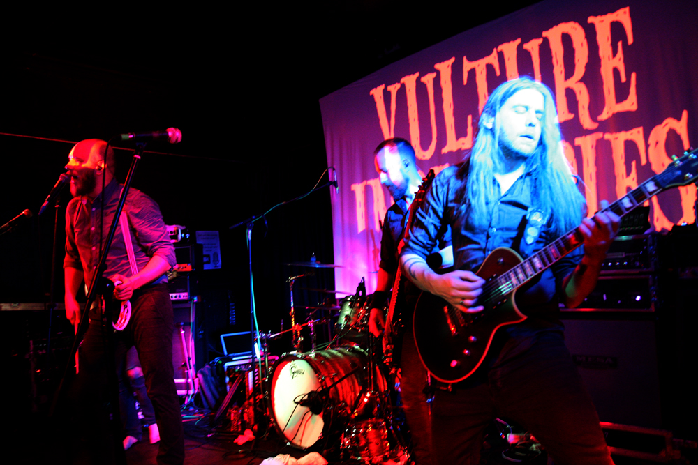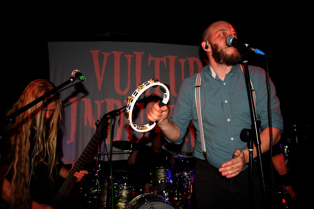 It’s barefoot carnival time and there will be tales of woe but that’s OK as the bonkers crew from Bergen Vulture Industries are here to entertain us and as their track record proves they are very good at doing so. It’s an eclectic and sadly small audience watching the band but nobody is put off their stride and more intimate parties can often be the most fun. We show appreciation by stomping along to songs from latest album Stranger Times and a good few from older times too. It’s deranged and manic, singer Bjørnar a fine compere although he seems like he is looking for something to stand on and tower above us as he normally does, the small stage here not offering the opportunity. Stage props of a drum stick, tambourine and a little bit (maybe a whole lotta) love are gathered instead as the band spark up a Lucifer and the world burns. The spirit of ZZ Top is strong here and we groove away caught in a heady twist. After that we are asked to roar. “It sounds like 500 in here,” shouts the frontman and in response a lone voice yells out “I’m from Yorkshire!” Comedy moment, you really should have been there. We are all smiling like loons spurred on by Strangers with its mariachi like mentalist moments taking us from a London boozer to dusky Mexicana tavern. An accordion comes out and we are versed in audience participation and hrumm along to new single Deeper. It may have only dropped a couple of days ago but it seems we all managed the words just right. The Hound gives the singer the opportunity to get right up close and personal with the audience, staring in people’s faces and encouraging them individually to join in. We didn’t want it to finish but finish it must, luckily last song Blood Don’t Eliogabalus is a long one and with its hooks and carnival of souls vibe naturally descends into Bjørnar leading a conga line around the venue. Honestly who would have thought you could have this much fun whilst keeping your clothes on?