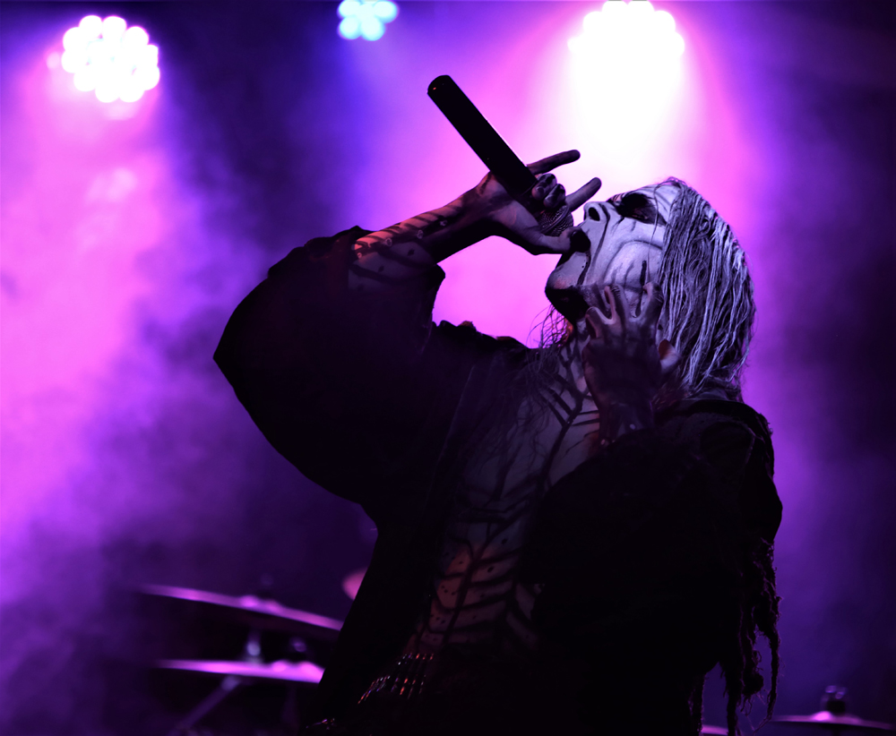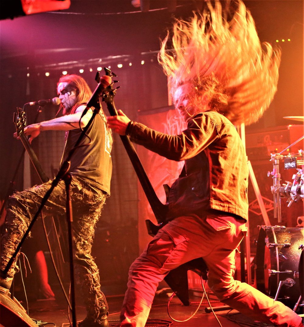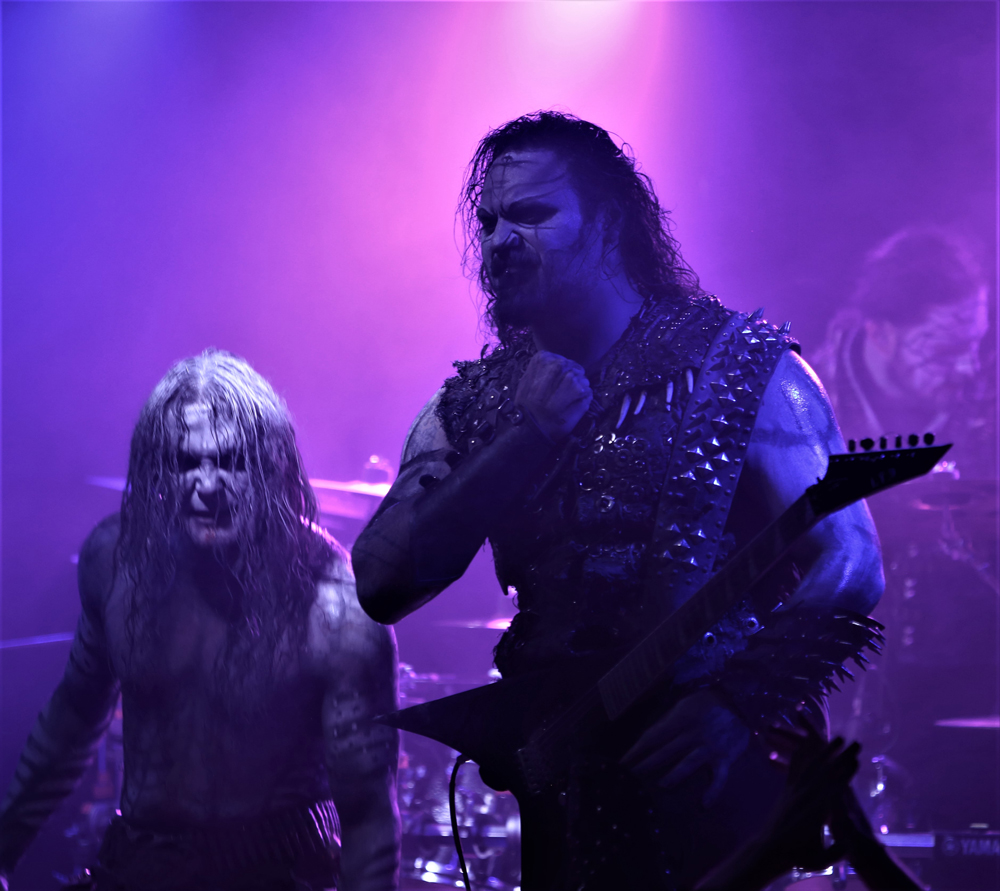 As the set progressed I found the theatrics becoming all too overwhelming and Droomers seemed to be prioritising his stage demeanour and characteristics over his vocal talent and duties. He was bolstered throughout by his cohorts, and their talents helped to bring the technicality and brutality to the evening. The bass lines were crunching and constant, showing a degree of clinical excellence alongside the marauding and rioting chords. The keys were delicate and precision personified, all being delivered by the maniacal corpse painted ‘Ardek’ with ‘Namtar’ destroying the kit and putting in a full shift without respite, to create the pulsating backbone to the horror theatrical exhibition.