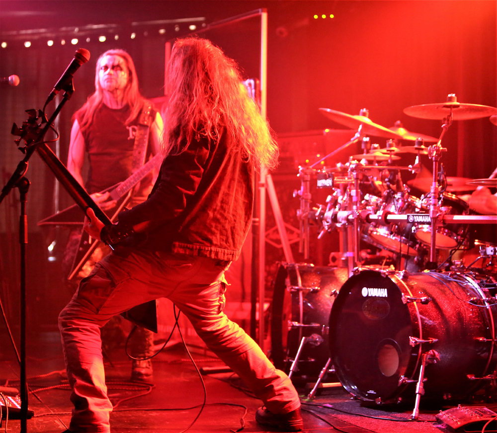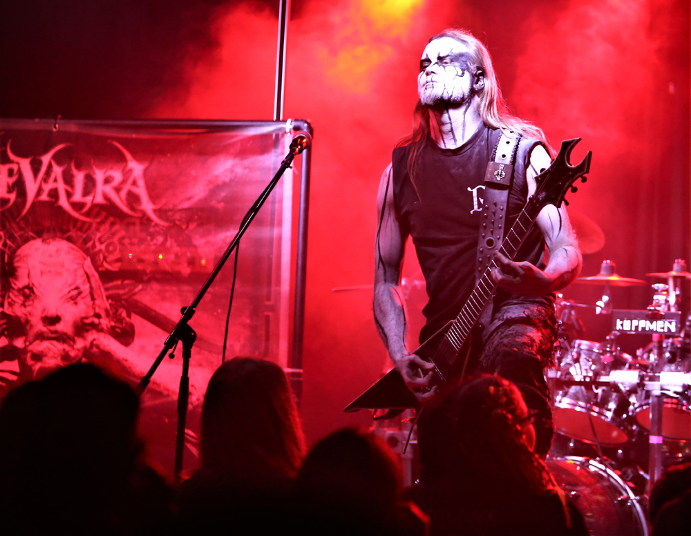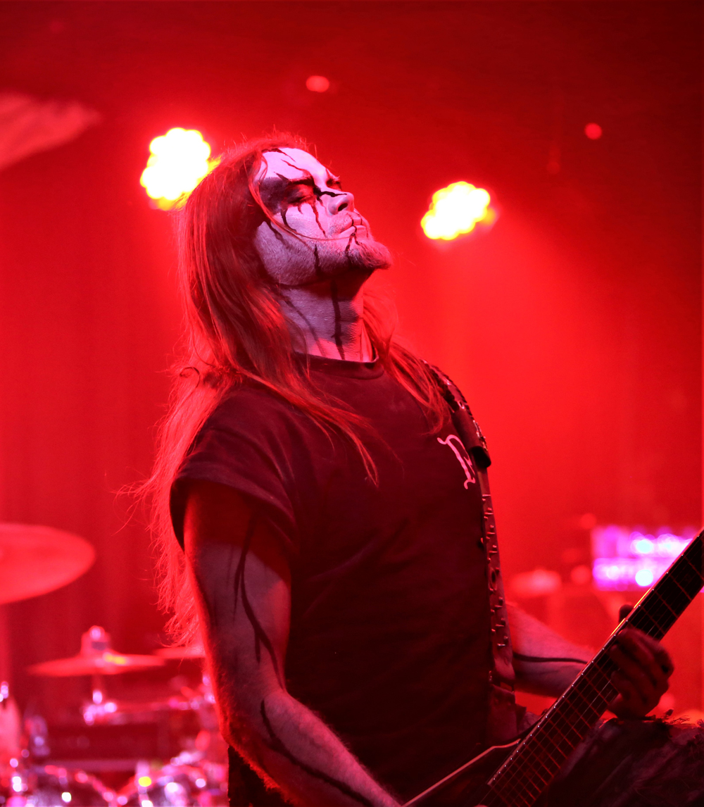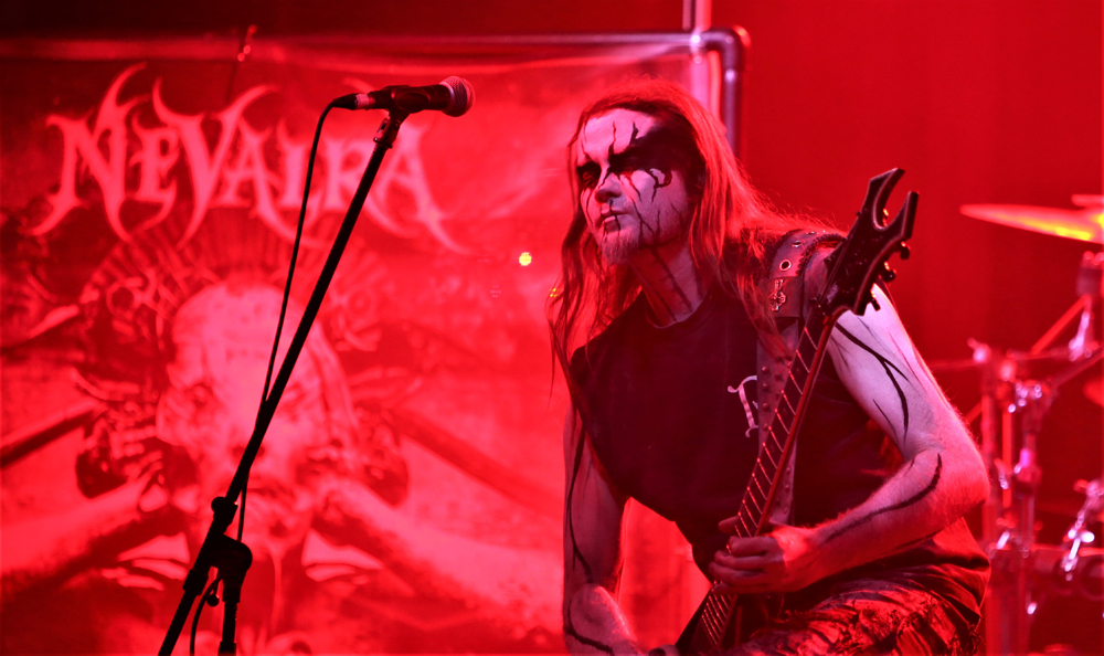 By the time the bells tolled and Nevalra strode onto the stage, the crowd had swelled to a modest size and produced a healthy cheer for Scott Eames and the American black metal horde. Eames was the only one adorned in corpse paint but this he had done with precision and artistic flare. The band launched into their set, and at times the vocals and drums could seem a little over bearing and overpowering to the guitar sounds, and this was a shame as the guitars were proven to be technical in their arrangement and brutal in their power. This was the first time Nevalra had graced our shoreline and the set tonight was made up of tracks exclusively from the forthcoming ‘Conjure The Storm’ record. A nice and accomplished start to the evening from these Americans, and definitely one to remember for the future.