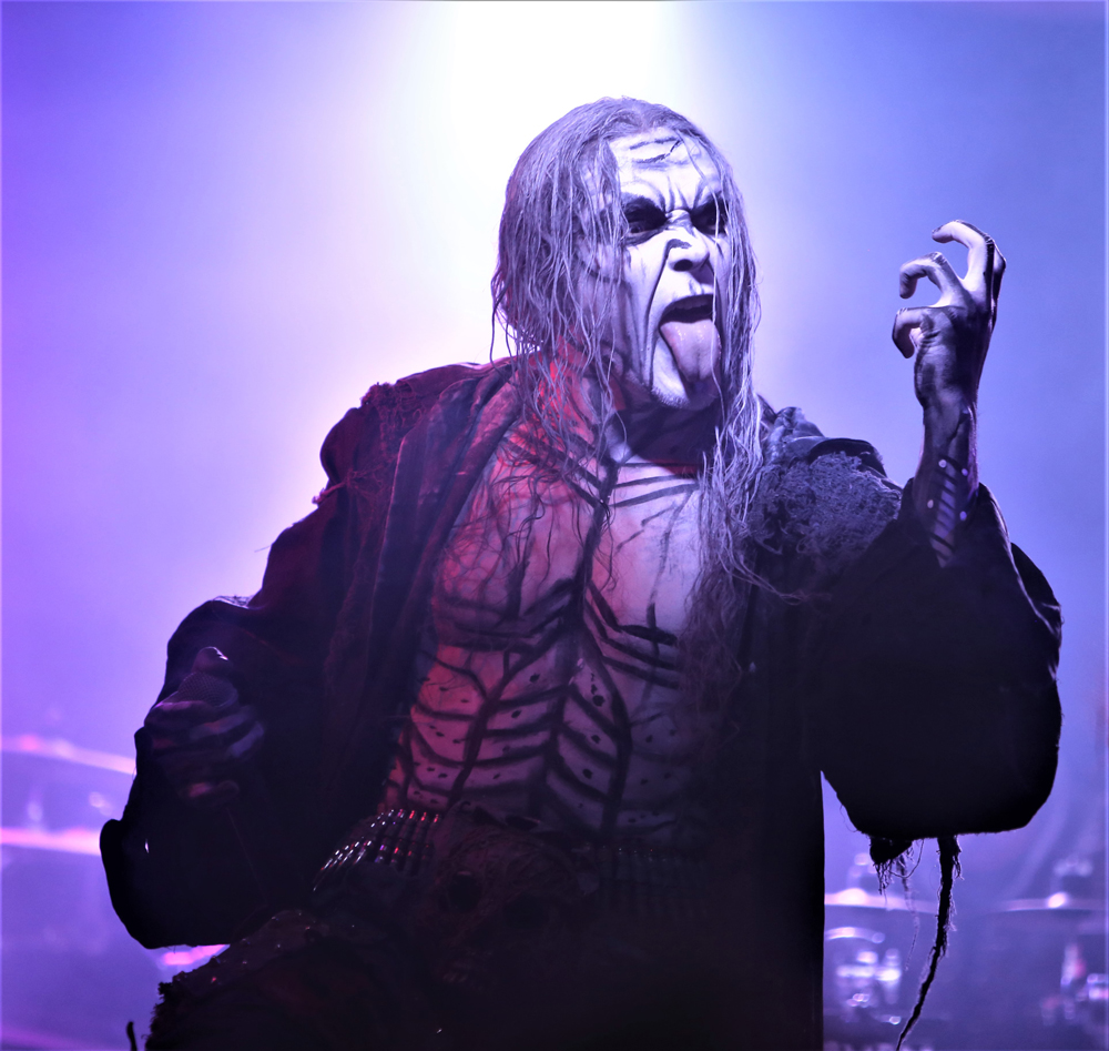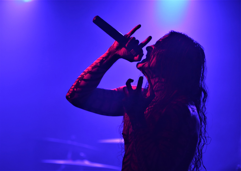 The crowd had morphed into a healthy size, and then as the lights went down and Carach Angren strode through the crowd in order to reach the stage itself, there was no denying who the gathering were there to see tonight. The band were decorated with corpse paint in various guises, and they wasted no time before launching into the set with energy and passion alike. Carach Angren appeared a little constricted on the Rebellions modest stage, although this didn’t stop the energy and commitment shown by ‘Droomers’ He was akin to a leaping gazelle and his vocals were accomplished and powerful, preaching each word with desire and hunger. The rest of the ensemble were tight, each seeming to feed off the others riff or beat. The stage was decorated with a mannequin, which was exposed mid set, just in time for ‘Blood Queen’, with all manner of graffiti and purposeful lines placed with precision. Droomers then welcomed up a member of the audience to be his ‘Blood Queen’ in which there were several willing volunteers. The whole process and theatre became a little cringe worthy and uncomfortable and it wasn’t too soon before the band launched back into the set with a powerful rendition of ‘Blood Queen’ itself.