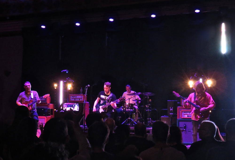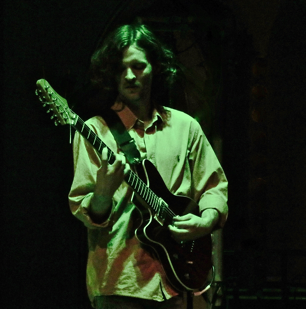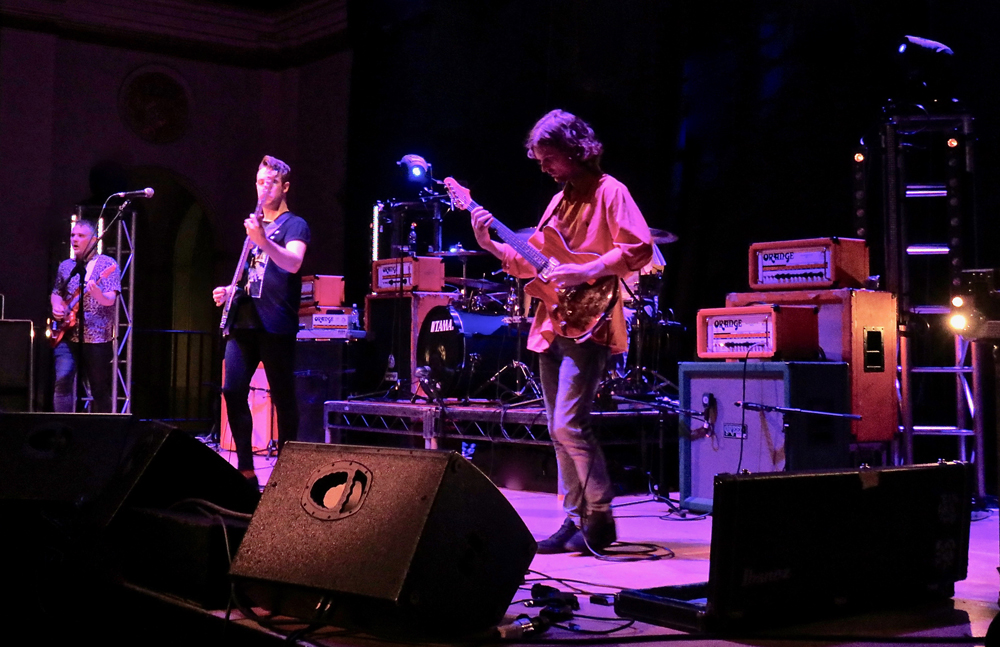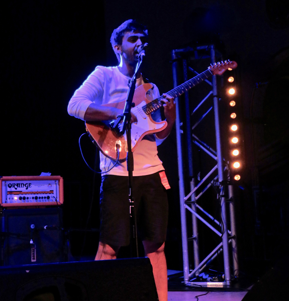 I’d seen local act Body Hound before and was hugely looking forward to their show as they produced a masterclass in instrumental post rock vibrancy. Their energised tunes were saturated in acrobatic guitar work as each guy utilised the stage fully, engaging with the increasing crowd with fluidised tempo changes and cohesive riff morphing that instilled an aura of catchiness with adroit musicianship. Each riff catapulted their songs to varying levels of impetus, balancing the heavier denser phases with more tuneful ripostes.