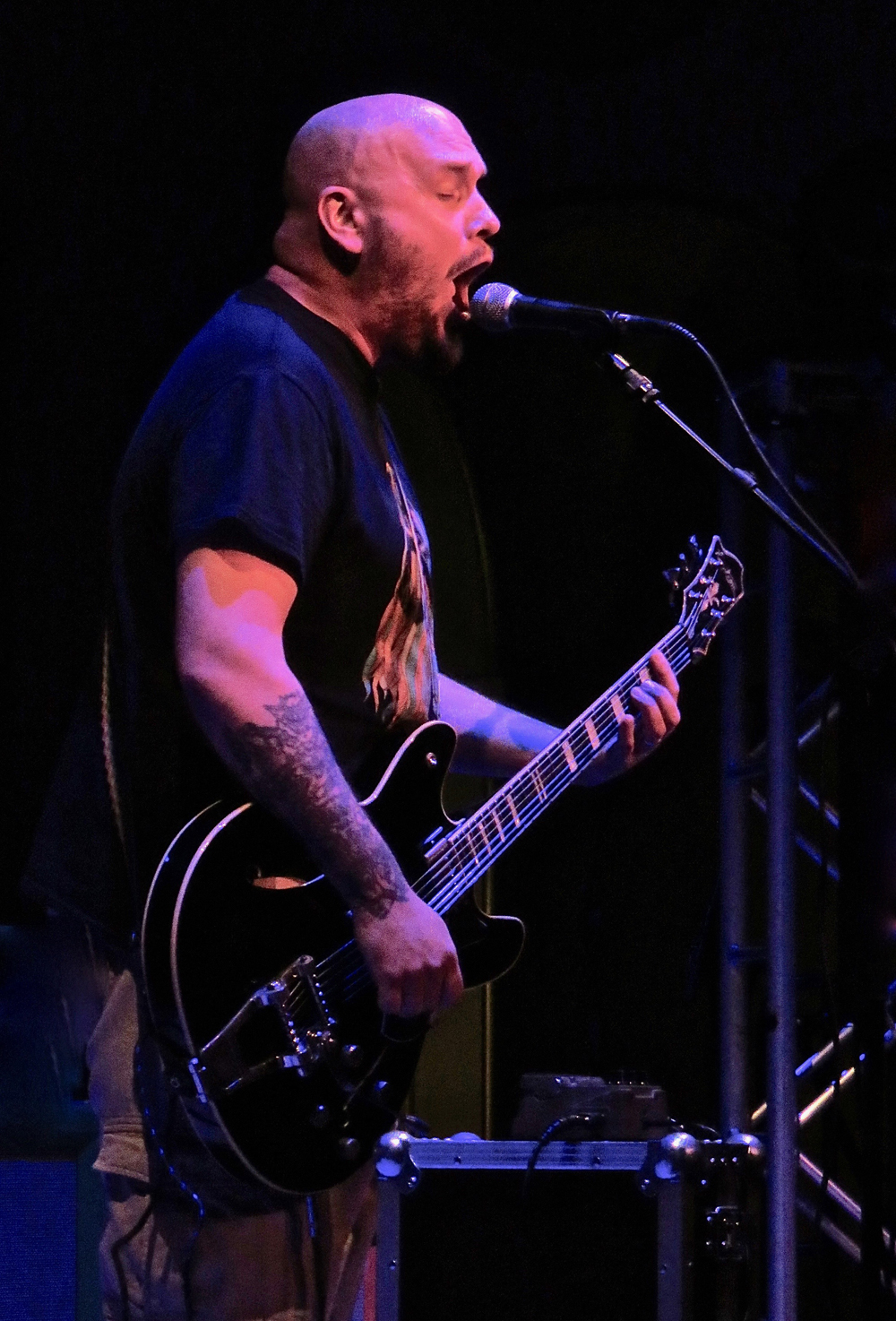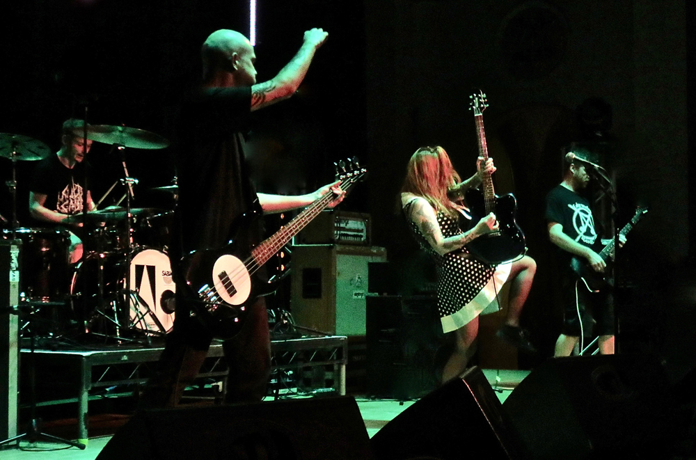 Talking of my shooter, he had ‘bigged up’ A.A. Williams prior to coming and indeed after his description I was very much anticipating an emotive set which is exactly what I and the gathered crowd got. The multi-instrumentalist played keyboards, acoustic and electric guitar and performed vocals with a backing raft of musicians who were equally dextrous. The band took a while to get going as the drummer took an age to get his sound right it seemed, before they breezed on stage ready to start, though the pink gaffer tape on the keyboard needed removing as it was a distraction. The songs offered varying levels of intensity with more austere metal aspects contrasting with the sorrowful acoustic moments to produce a set laced with atmosphere though the vocals were far too low in the mix, and at times inaudible to my ancient auditory system. I did enjoy the blackened intrusions to the songs as they created angst against the more dramatic and emotively charged moments as the crowd, again, fully appreciated what was being played and moreover were mostly very respectful during the set for the quieter more serene songs or sections as I was left thinking I needed to hear the studio output for a fuller appreciation.