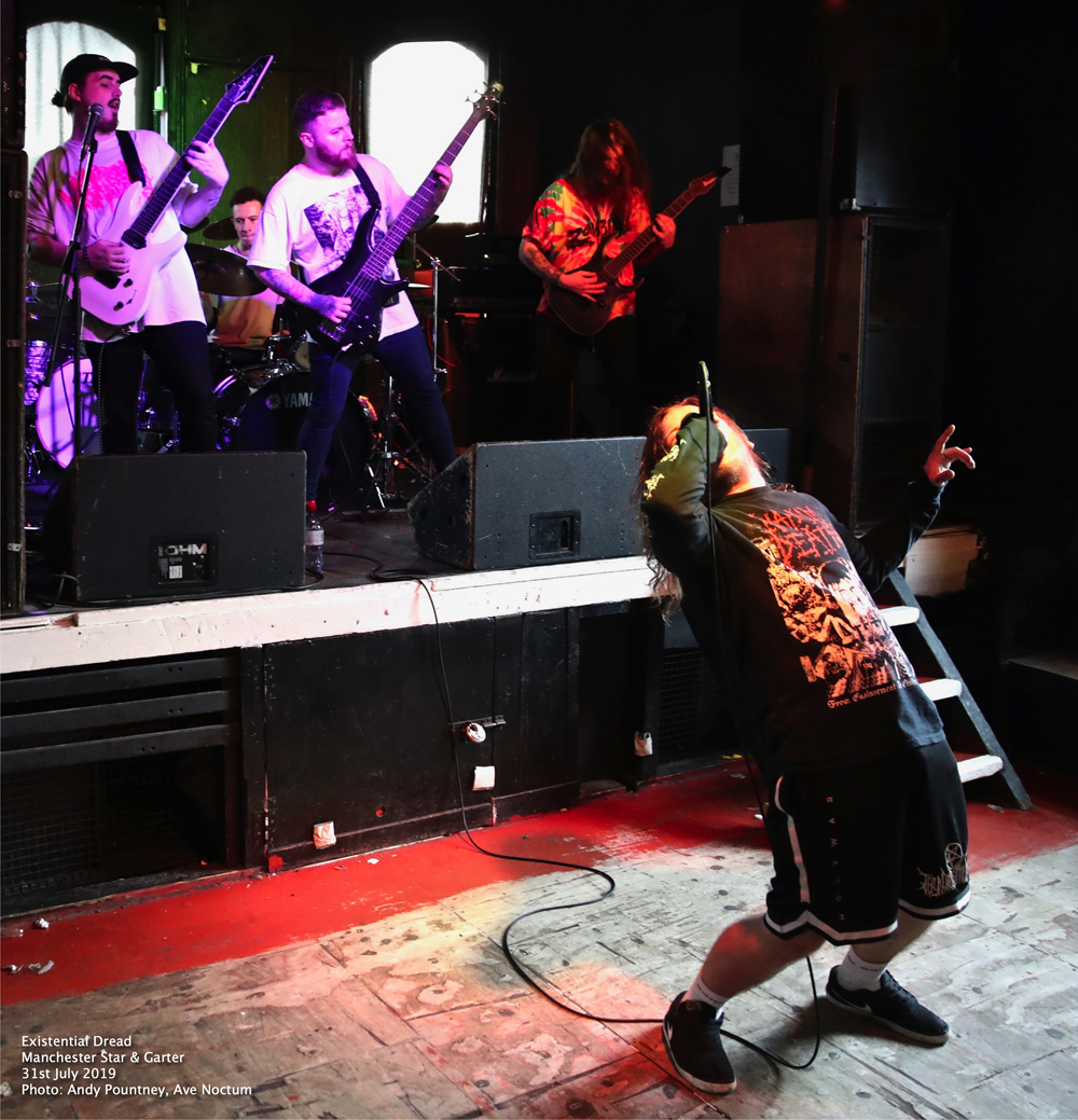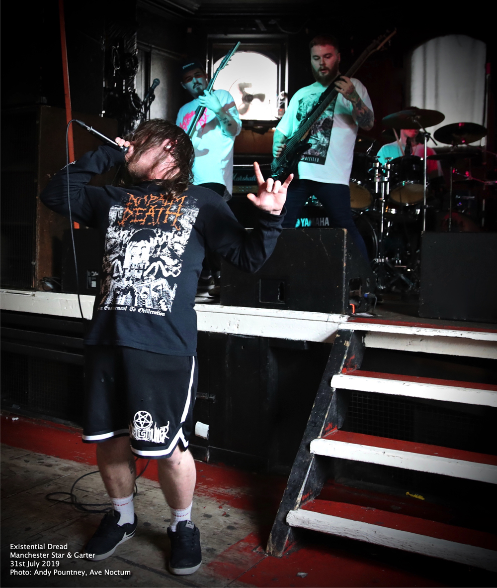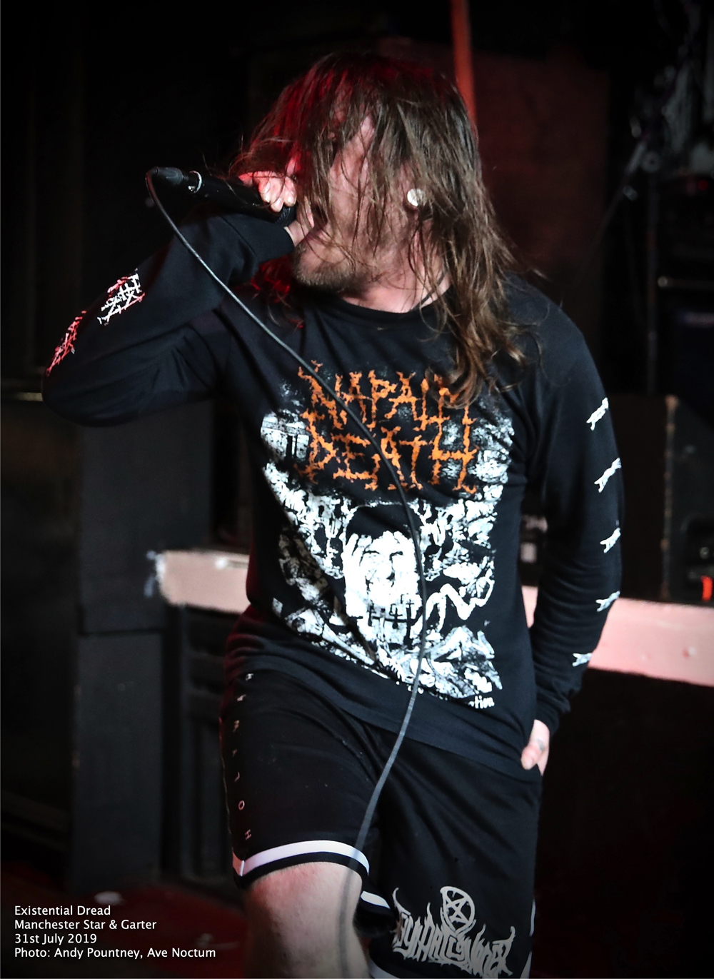 Opening the bill were local slam heroes Existential Dread where the vocalist prowled the floor while two “slam ninjas” (I’m being polite) did their thing down the front. The band battered through their short set, full of riffs, breakdowns and screeches and blew the cobwebs of those who had made their way down to the venue early.