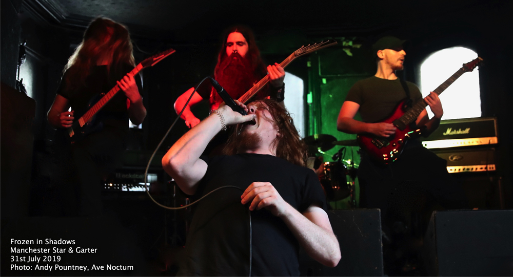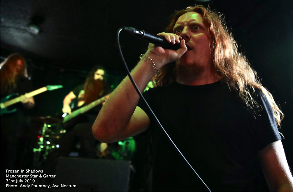 I’d seen local act Frozen In Shadows earlier this year when they supported Jungle Rot at the same venue but wasn’t too impressed with their brand of melodic death metal spiced with a splash of thrash. Second time seeing them and my opinion has improved marginally as the vocalist also had to stand in front of the stage due to the limited amount of space afforded with there being two drum kits. Pulsing with vicious riffs yet embellished with a plethora of fine hooks the band were certainly better, though I do feel they need to work on the lead breaks as they came across as strained which might have been down to the sound which whilst thunderously loud did lack definition on the instrumentation. Be that as it may they had a healthy following from their fan base and did a fine job in stirring up the crowd.