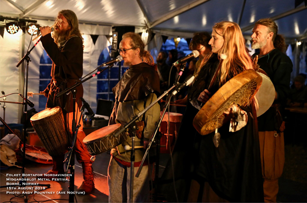After the monstrous anarchy of Tormentor, the switch in pace from outright blackened malevolence to the more sedate folk tones of Folket Bortafor Nordavinden who had the dubious honour of being my 5000th live band I’ve ever watched. They had a stuttered start to their proceedings but remained upbeat and humorous having plenty of banter with gathered crowd who at the Kaupangr stage, (this was the stage that had previously had an outdoor one last year) were mostly sat down around a camp fire keeping warm as the brisk night air drew in.