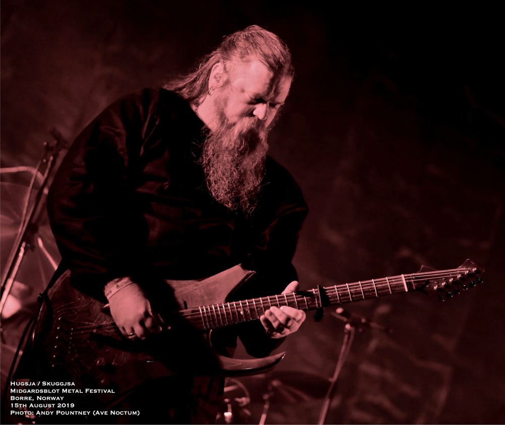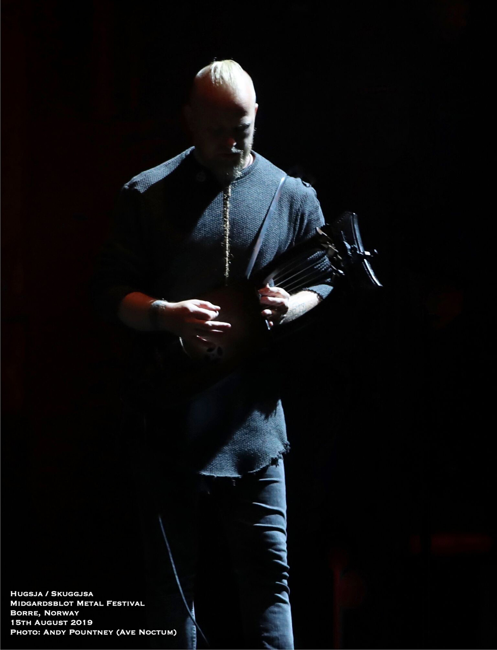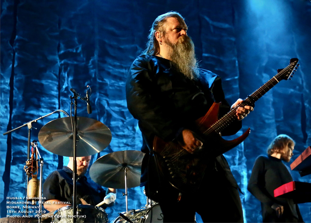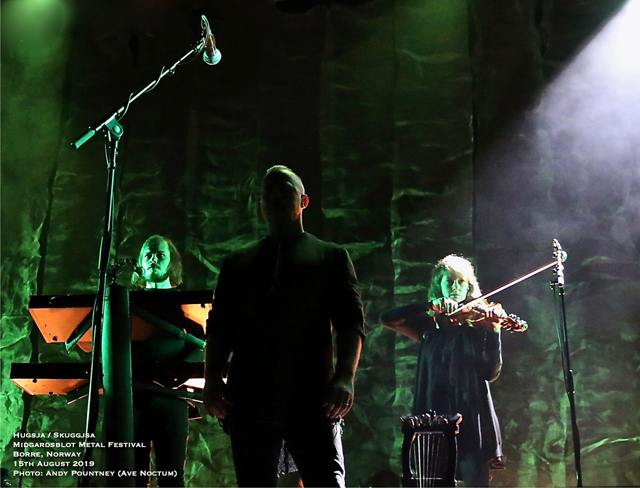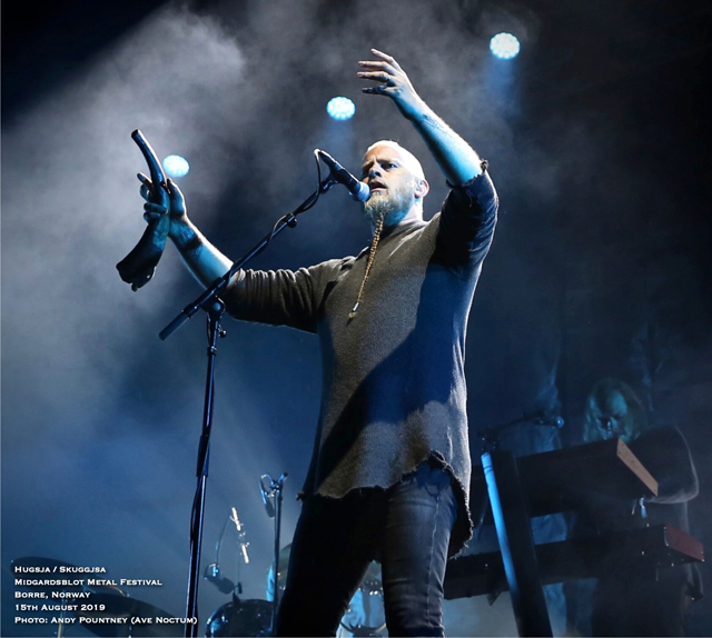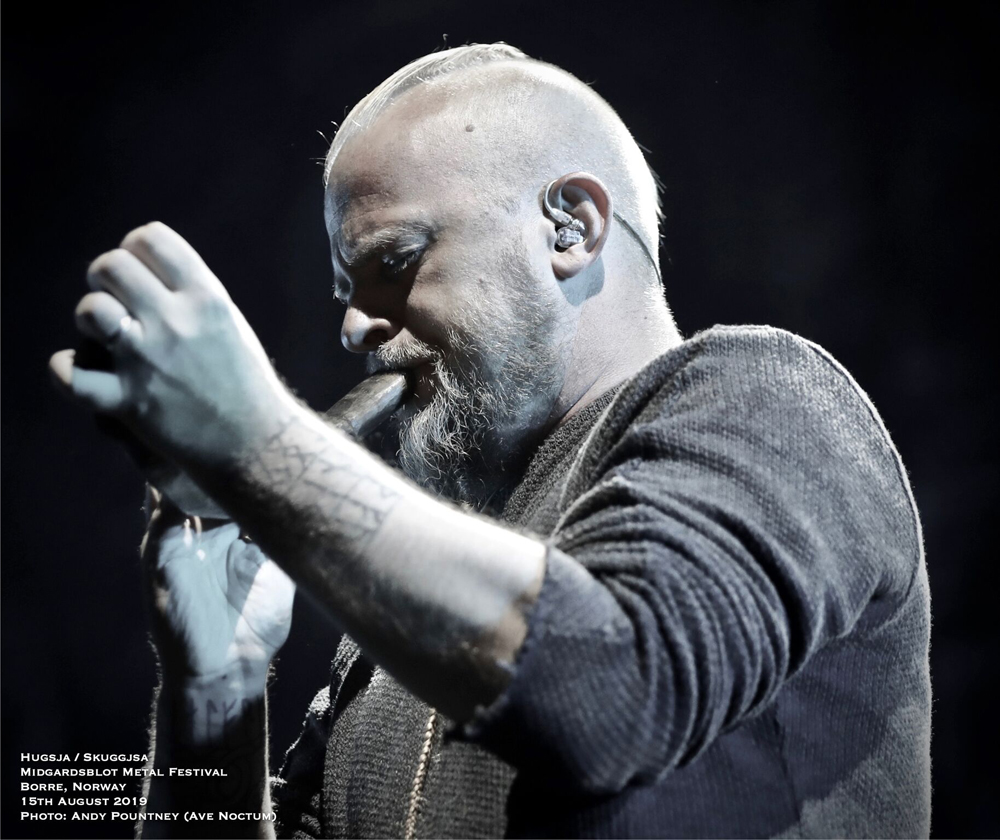 I’ve got to admit that the headliner of Ivar Bjørnson and Einar Selvik who performed material from their Hugsja and Skuggjsa releases but also chucked in an Enslaved song and some Wardruna material too, I was a tad sceptical as to what to expect. However from the moment they started there was a mesmeric quality that you just could not take your eyes off for a second as the beautiful, ambient and acoustic opening saturated in red light started their set. Indeed for about half of their set they utilised only monochrome lighting in each song and rarely varied the hue or brightness. What that did was make you focus on the band as the emotive vocal tones seeped with passion and texture where the dynamics of every song fluctuated majestically. The use of various instruments from string to wind by Einar Selvik was coupled to his sublime vocal display where each note was gracefully honoured by the respectful crowd. As the light phased into a green shade and the forest behind and to the sides was lit in turquoise the ambience was exhilarating as a horn sounded whilst blanketed in white light for “Skuggsjá”.