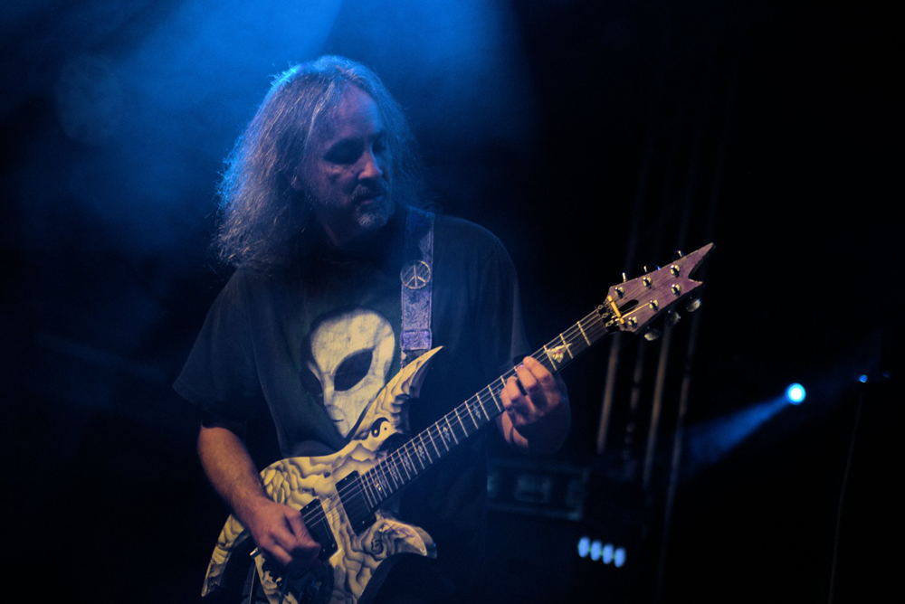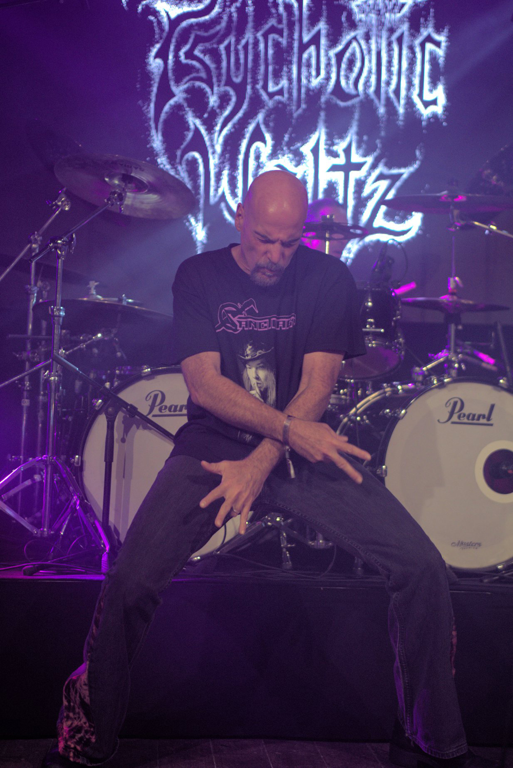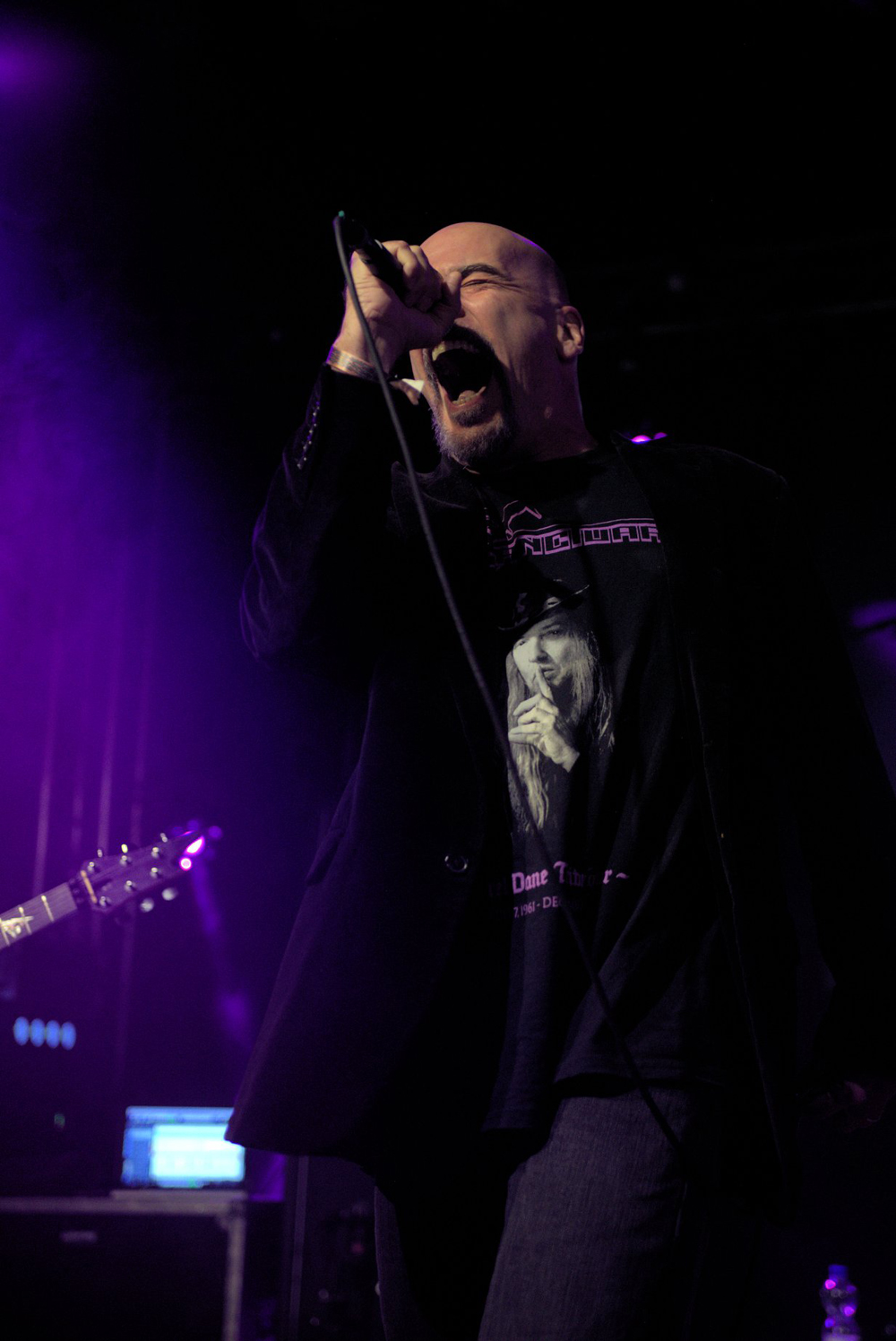 Now this is where visionaries of the past met the present. Before Psychotic Waltz came on, my friend Erik gave a passionate speech on how they had put themselves about in the early 90s and shaped the future of prog metal. I did know about that but was listening to other things at the time, so for me this was always going to be a history lesson from today’s headliners. I was intrigued to find out what this band was going to cough up. Dark measured tones rumbled across the room, accompanied by the whistling of the flute. The singer’s voice had seen better days but that was ok. This was a band who weren’t in a hurry. They just played heavily and progressively. No crap here. What wasn’t ok was the loss of the backing track, causing a ten minute delay. The irony of this modern technology failure wasn’t lost on the old school singer, who adlibbed his way nicely through the glitch like an old pro. The delivery was rough and ready and dirty, and at the risk of sounding like an X Factor judge, real. This crusty old school stuff seemed like a cross between the psychedelic 70s and modern prog. The singer used his hands to express the mood of the song.