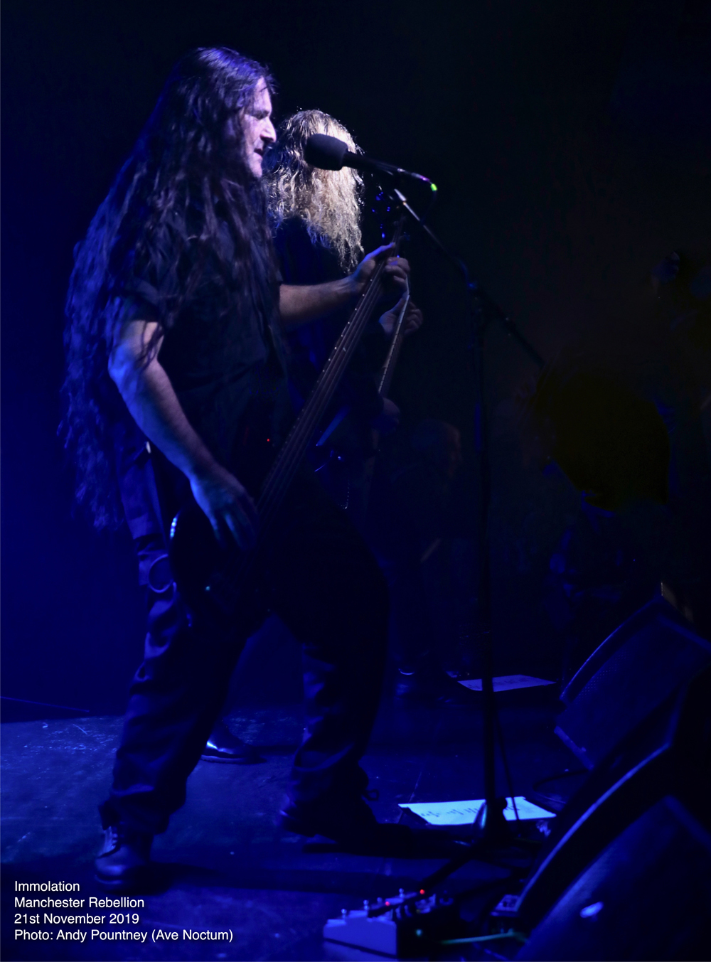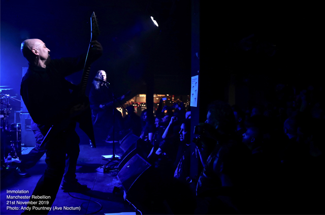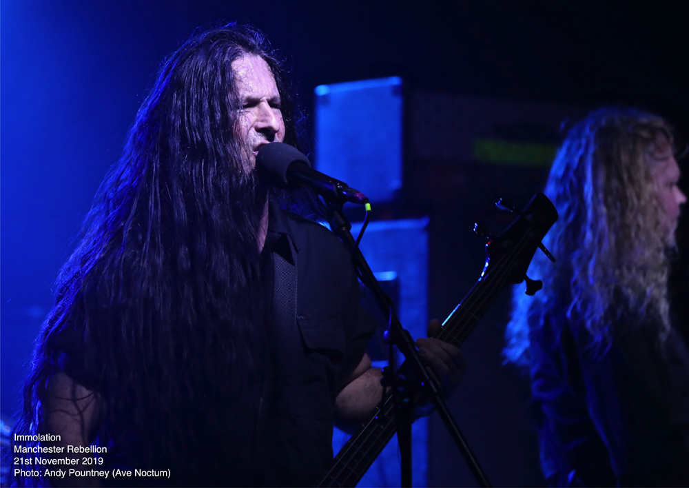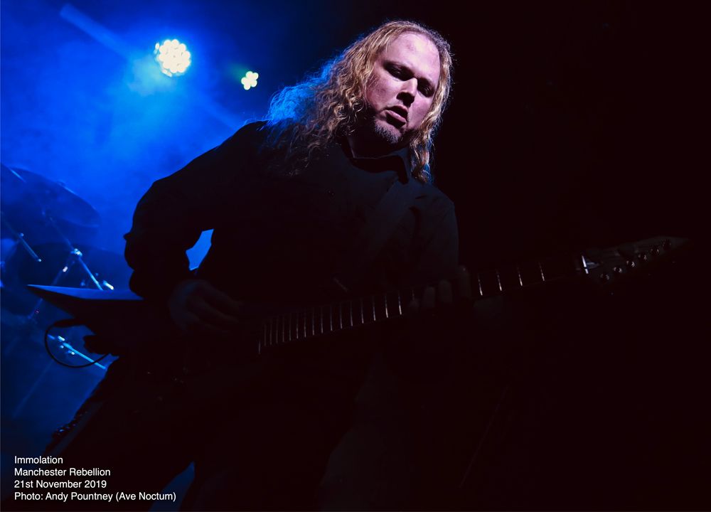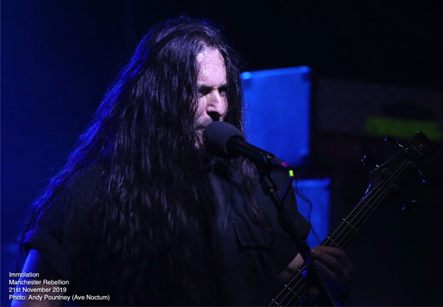 Savaging the crowd with “Kingdom Of Conspiracy” the sound seemed to just encase you as Ross Dolan’s bass work threatened to cause sonic asphyxiation. Using the stage wisely so that the guys didn’t crash into each other, especially Dolan’s hair which is still the longest I’ve seen, except maybe Alex Krull. Pausing after “Father, You’re Not A Father” where the deluging double bass endangered the foundations of the building, Ross had a brief chat of the usual stuff before “Distorting Light” was thrust outwards like a tsunami as the dispassionate onslaught led straight into “Swarm Of Terror” before wielding the vicious “Into Everlasting Fire” from the band’s debut some 28 years ago. With audience chants of the band’s name there was more chat offering some respite as “World Agony” was a sinuous amorphous assault where ultra-deep guttural vocals captured an aura of grisly horror. With an extensive discography there was an extensive set list as “Spectacle Of Lies” continued the bombarding nihilism producing a sonic opacity that only Immolation can produce. “Burn With Jesus”, another old track, was nothing short of explosive as transport arrangements became impending and I left whilst they plunged into the cavernous destructiveness of “Lower” knowing that I had witnessed a fantastic evening of extreme metal.