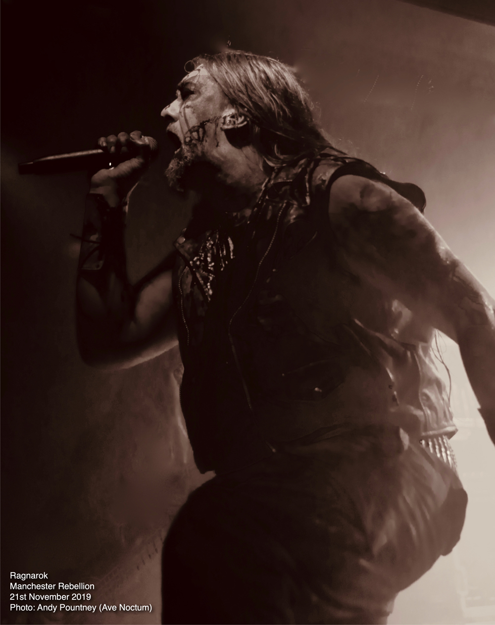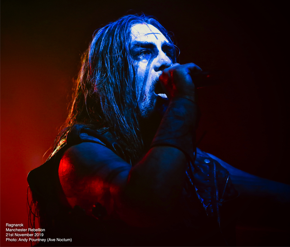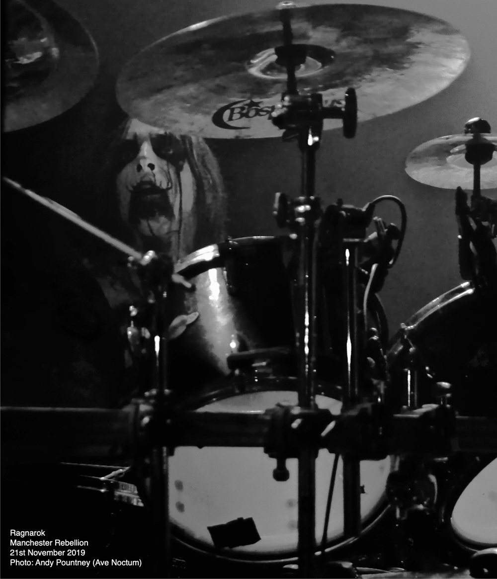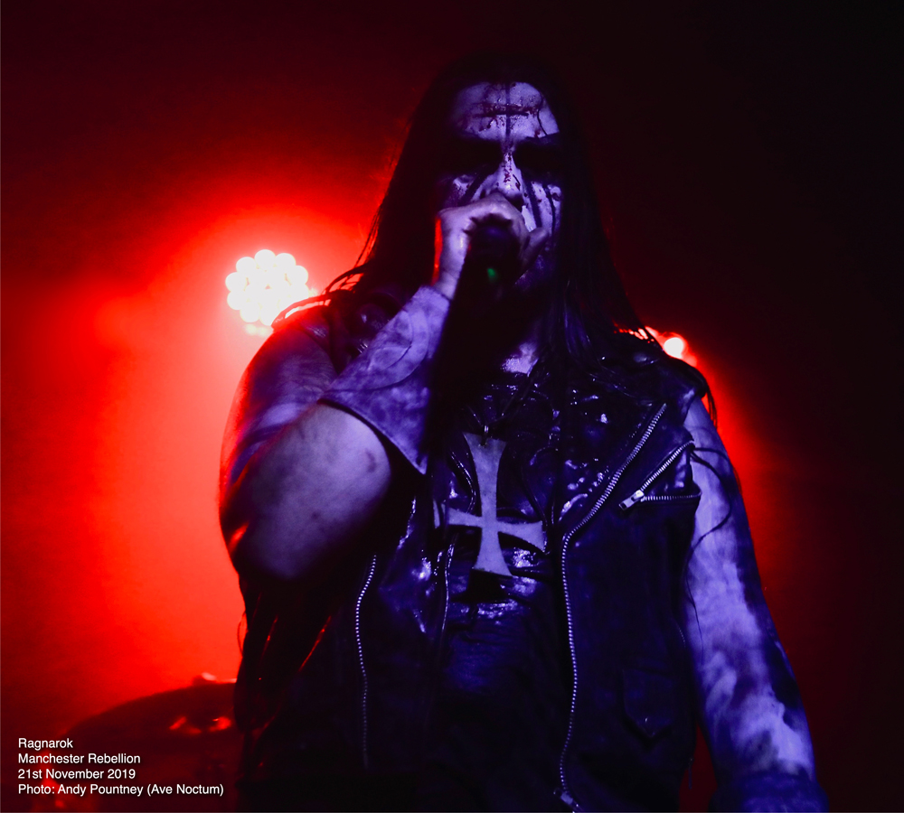 Offering a stark disparity in the evening’s deathly style was Norwegian black metallers Ragnarok who, adorned in suitable corpse paint, set about obliterating the now decent numbers in attendance. This was a masterclass in enraged wrathful black metal but what Ragnarok do so brilliantly is infect every song with really catchy riffs despite the speed as they opened with “Dominance & Submission” after a suitably dramatic intro. The band sliced into the crowd with razoring riffs inflicting sonic mutilation throughout their set as “In Nomine Satanas” followed where the barbaric demented vocals poured out scorn and malice. The injection of those catchy riffs came courtesy of thrash on “In Nomine Satanas” where the fluctuations in pace sent waves of momentum over the venue. “Chapel Of Shadows” continued their utterly savage set and I wondered whether they were playing a single song from each of their nine albums but alas they didn’t as a couple were omitted.