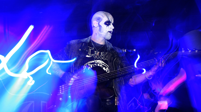 Onto the main event and bodies are crammed up towards the stage and camera phones primed in expectation of the Norse invasion. Taake are tonight honouring debut album Nattestid ser porten vid from 1999 by playing it in its entirety. It’s not however going to be done in a traditional sense but rather with songs re-ordered, back to front, inside out and with others from the group’s illustrious history combined. First naturally as is the tradition it is time to hail Der Todesking a signature tune from the soundtrack of Jorg Buttgereit’s classic film of German morbidity. The band troop on Hoest arrives to massive cheers and they are off, the combined power of Nattestid IV and V knocking us practically off our feet. For the first couple of numbers Hoest weilds a mighty bass before dispensing of it and take over performing sole vocal duties.