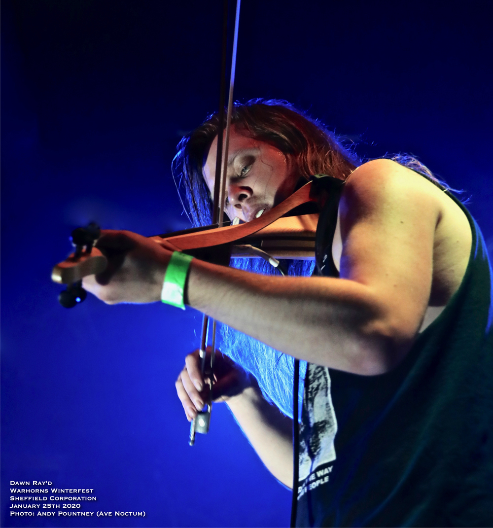 Follow that? Well best to have something completely different and the band I didn’t know who I was most excited about seeing; Dawn Ray’d. To say friends love this band is an understatement so I decided to come in blind so to speak. For similar people like me they are a young three piece of drums, guitar and vocals/fiddle which is…well, different. Why not? Their attack is utterly feral, commitment coming off them like a blast beat and the angular sideways on figure of Simon B. ripping into the words with grindcore ferocity. Visually they are, shockingly, excellent: The stripped down setup, the communication, the shapes hammered out all bleed integrity. Sound wise there’s real sharpness to the riffs; this is razors not blunt force which for me leaves the sound steering an odd route between raw black metal and grindcore. Until the fiddle comes in. Then it all kinda lurches sideways into NMA territory with no drift or feeding in, simply suddenly there it is, no vocals and the fiddle. Two songs in one. It kinda keeps pushing me away which is sad as I really like the parts, just not sure how they fit together. I think I’m going to have to investigate their studio output. But, again they go down deservedly superbly with the crowd. They leave us with a political message which, well, is what they are about so fine by me.