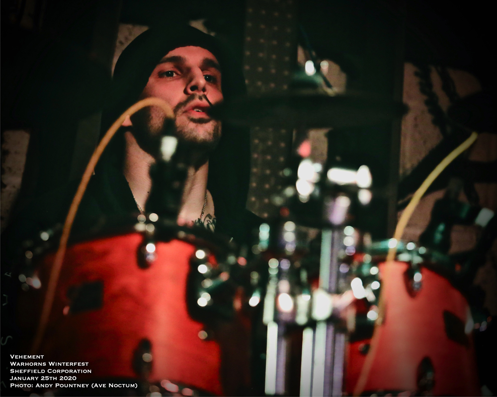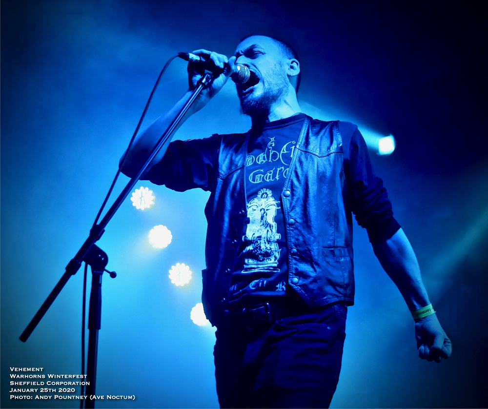 Then came Vehement. Another black metal band I’d been told to watch for. ‘Tidal Verse’ hits us full in the face for a raging entrance. There is so much power here behind an initially unassuming visual presentation, hard and solid with some great bass lines twisting things. The vocalist has a superb varied and emotional attack and he begins to twist, turn and gesture as though caught in some black gale: A little of a Mr Kvarforth in his sinuous gestures, maybe, and a bit of Shining in the sound.