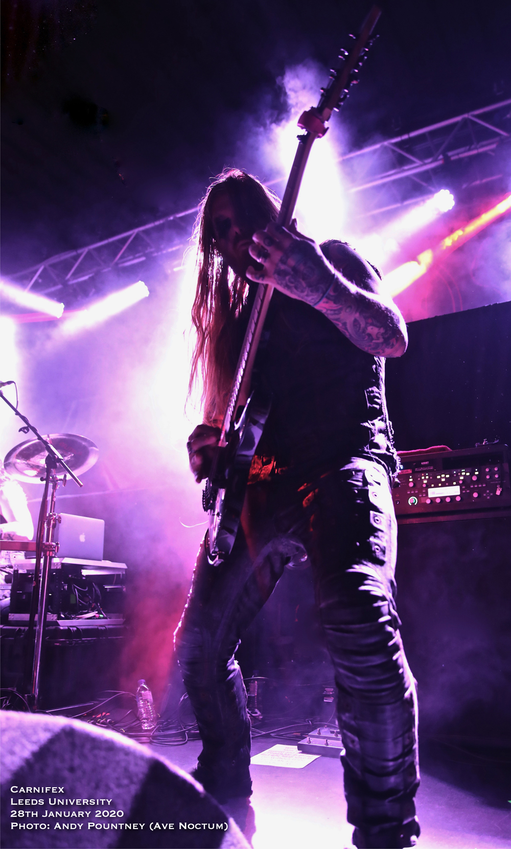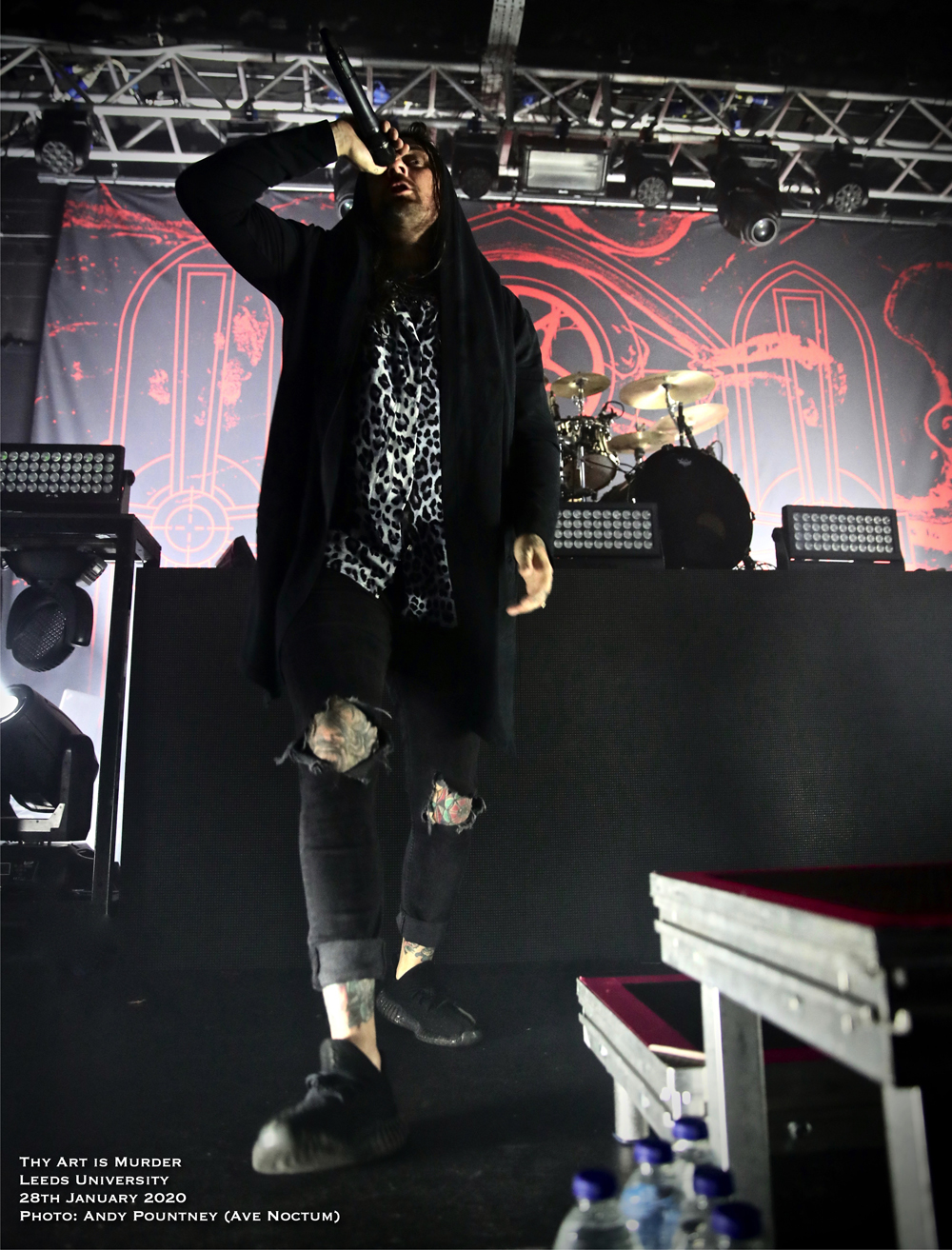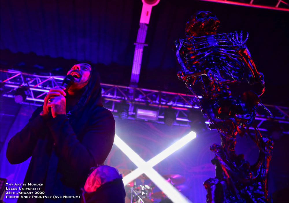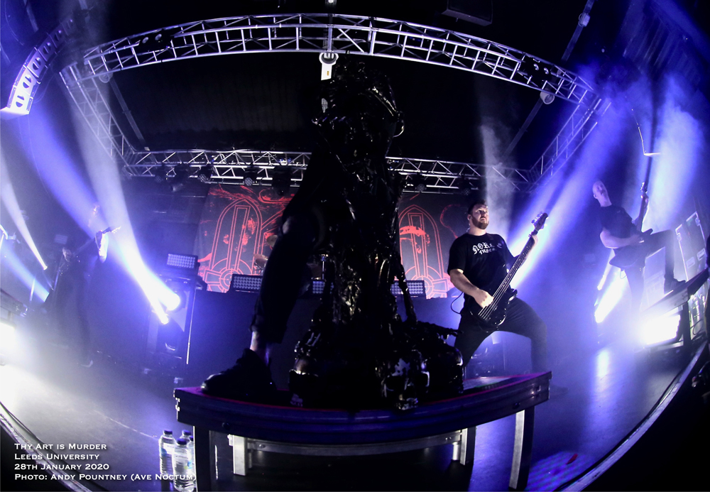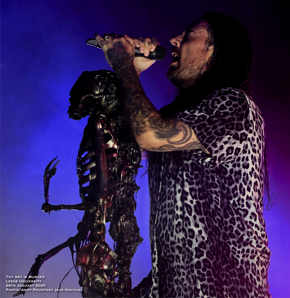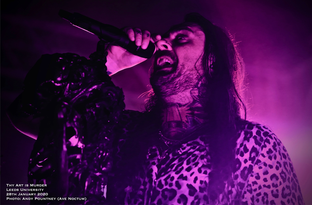Carnifex gave Thy Art Is Murder a mountain to surpass in terms of aggression and outright pulverising but the Aussie Neanderthals completely obliterated everything that had gone before them. The band has gone from strength to strength on the back of a raft of superb albums that has seen them catapulted to the forefront of the deathcore scene, and rightly so. Humble as always and engaged with the crowd frontman CJ is one of the best around and tonight was no different as he was decked out in the leopard print top he always seems to wear. The man is demented on stage and has one of the best voices within this scene, and death metal too, such was his ability to shift tone in the blink of an eye. Backed by the stalwart horde it is easy to forget about them such is the domineering presence of CJ but they are equally essential as the crowd sang “Don’t Stop Me Now” (Queen) in full voice before the band arrived on stage and as that song ended some 90s dance tune started up to big cheers before detonating with “Death Squad Anthem” as the opener. With the song instantly igniting the pit the whole place seemed to erupt in activity as people above me on the stairs spilt their beer over me and my cohort without knowing they had. Utilising only normal stage lights the band had a blackened background where the drum riser was and only came alight after playing “Make America Hate Again” and “The Purest Strain Of Hate” coinciding with the three song limit my shooter had for taking photos, much to his disappointment. With the bass bombs upending the foundations of the building the crowd started a chant of ‘Yorkshire’ during “The Purest Strain Of Hate” as CJ asked for us to put our hands over the persons shoulder next to us which I never do and find it rather cringe worthy to be honest, though he did say if you don’t I’m going to punch every one of you! Some tosser threw a drink on stage which really annoyed the guitarist that side and had to be cleaned up quickly. Get a life people!