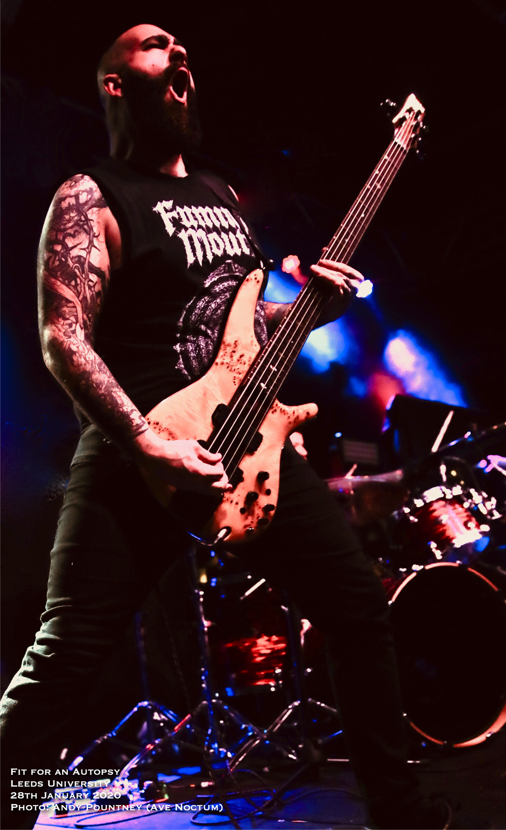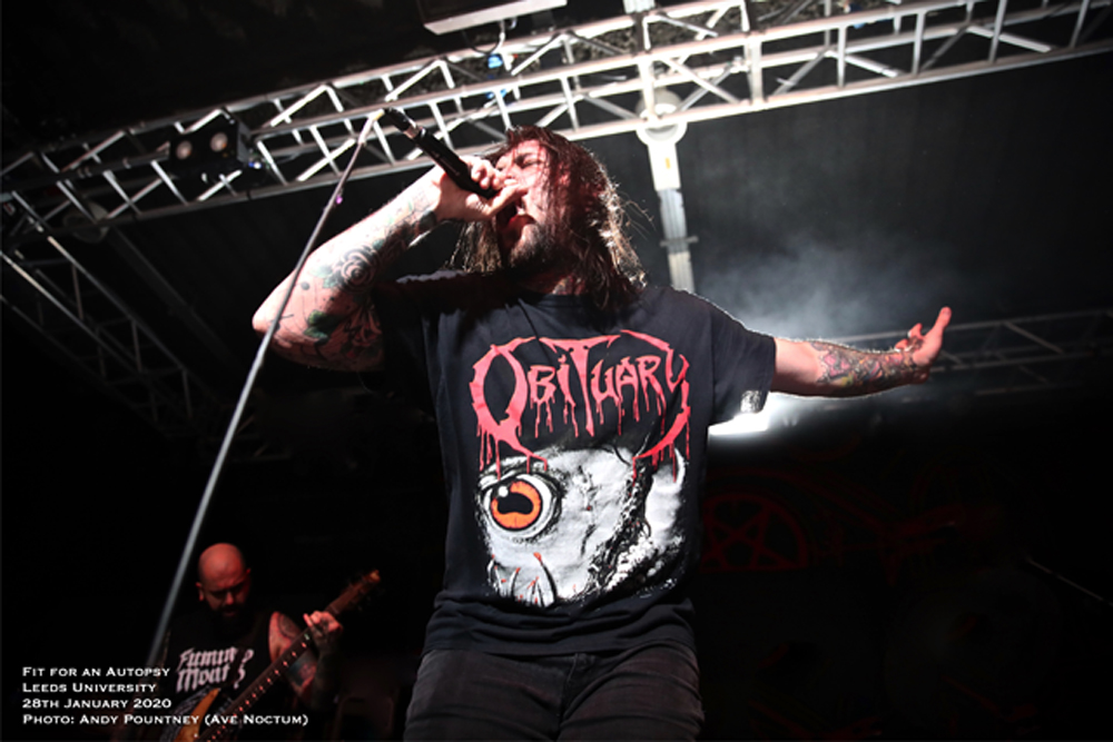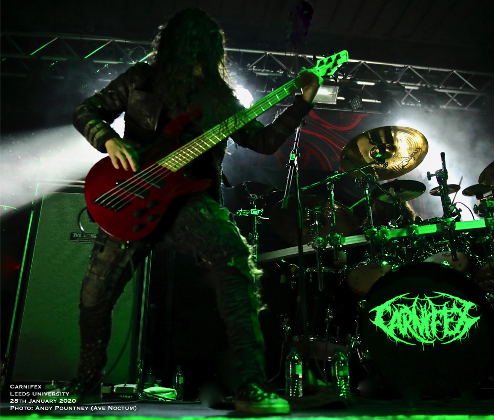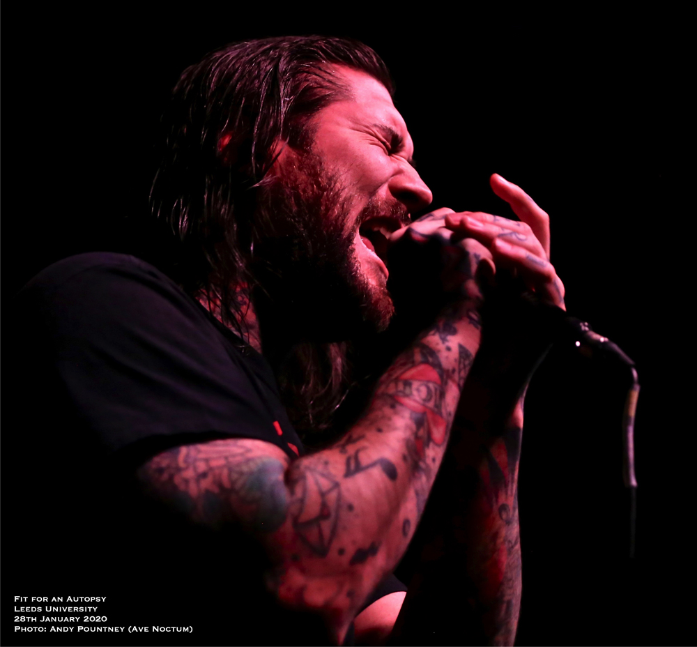 This was my fourth gig of 2020 and I doubt that there’ll be many touring packages that will be as brutal as this five band rampage that laid Leeds academia to waste. Transferring from the cold brisk night to the sizzling temperatures inside the Stylus venue meant stripping layers off for fear of melting as Texan bruisers I Am were already on stage. However with only a miniscule portion missed the band’s formidable deathcore thuggery, rife with plenty of slamming and breakdown riffing was warmly received by the already sweltering crowd which was very sizeable considering they came on at 6.30.