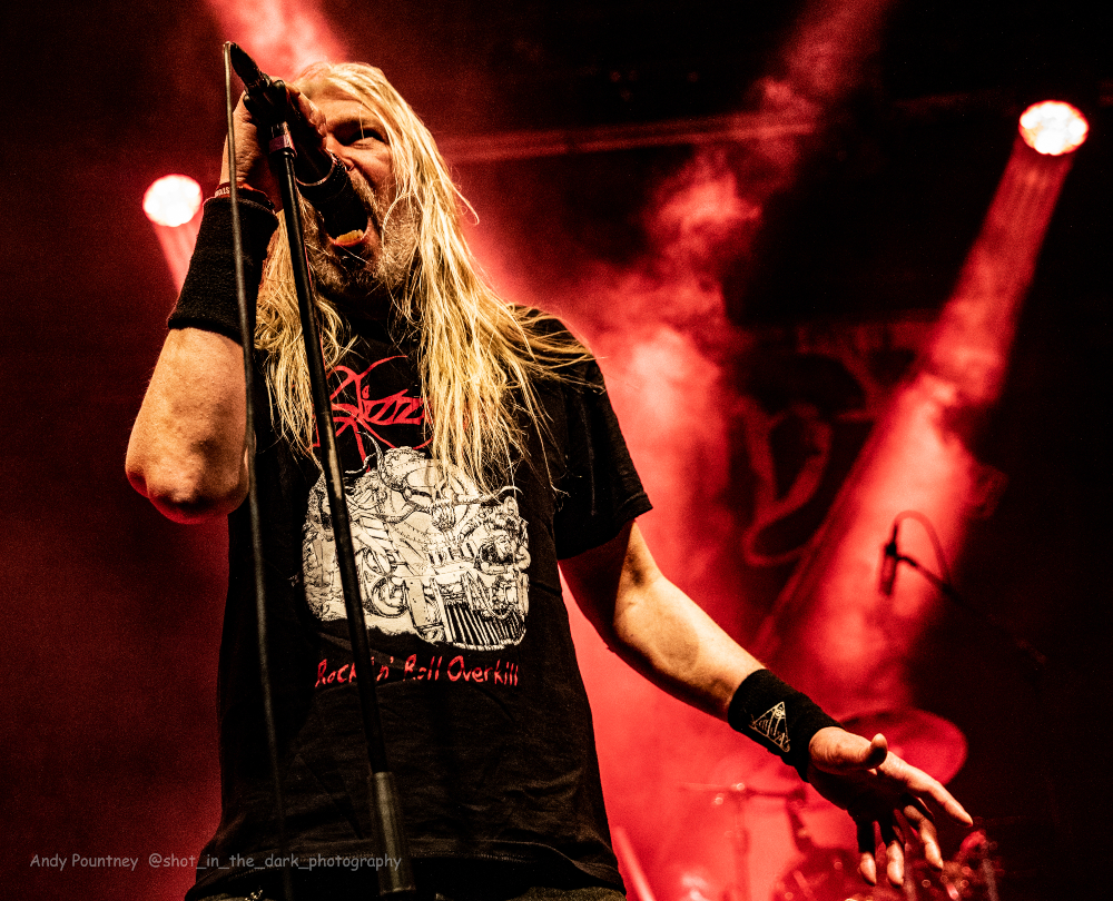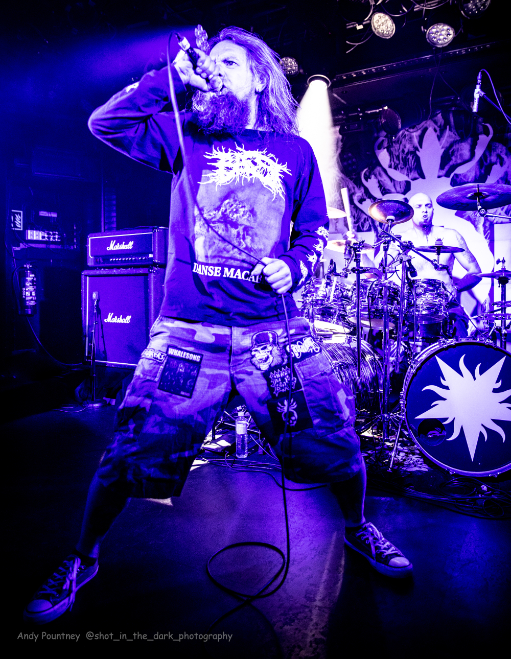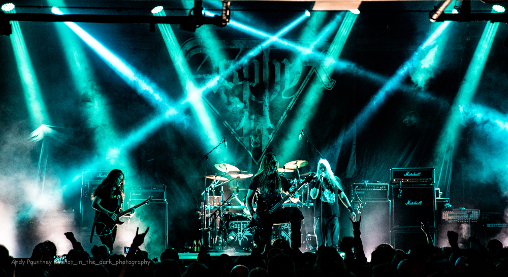 Next up were Dutch death metal legends Asphyx who delivered a crushing set of energetic old school death metal. The floor was a seething mass of flailing bodies as the pit opened up, before Martin van Drunen took a moment to dedicate a song to Vladimir Putin wishing him a ‘Death the Brutal Way’.