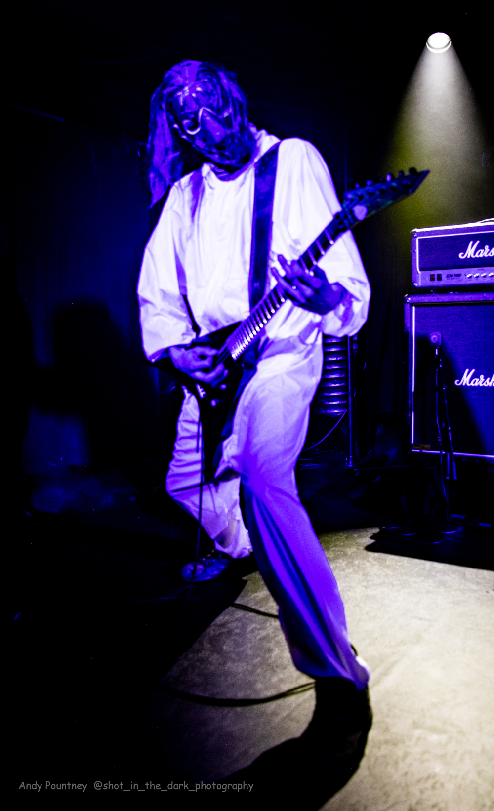 Downstairs, Polish competition winners Gnida were preparing to unleash their grindcore upon the Inferno crowd. The bassist and guitarist took to the stage wearing white boiler suits and masks adding to the atmosphere as opening track ‘Reeks of Death’ laid down a marker for the rest of the set.